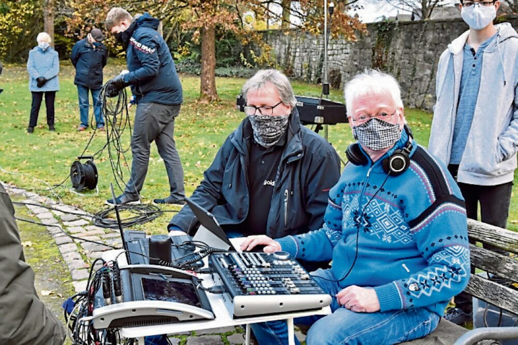 Seit Oktober probte das Ensemble im Pfarrgarten Geistingen, in den vergangenen beiden Wochen hielt das Aufnahmeteam in fünf Drehtagen an sieben Drehorten das Einstudierte mit Kameras und Mikros fest. Wenngleich Müller-Goldkuhle bei einigen Vordrehs während der Proben die Kinder nicht nur mit der Technik vertraut gemacht, sondern die Szenen mitgeschnitten hatte. „So hätten wir, falls die eigentlichen Drehtage kurzfristig untersagt worden wären, für das Video auf vorhandenes Material zurückgreifen können.“ Das traf glücklicherweise nicht ein.