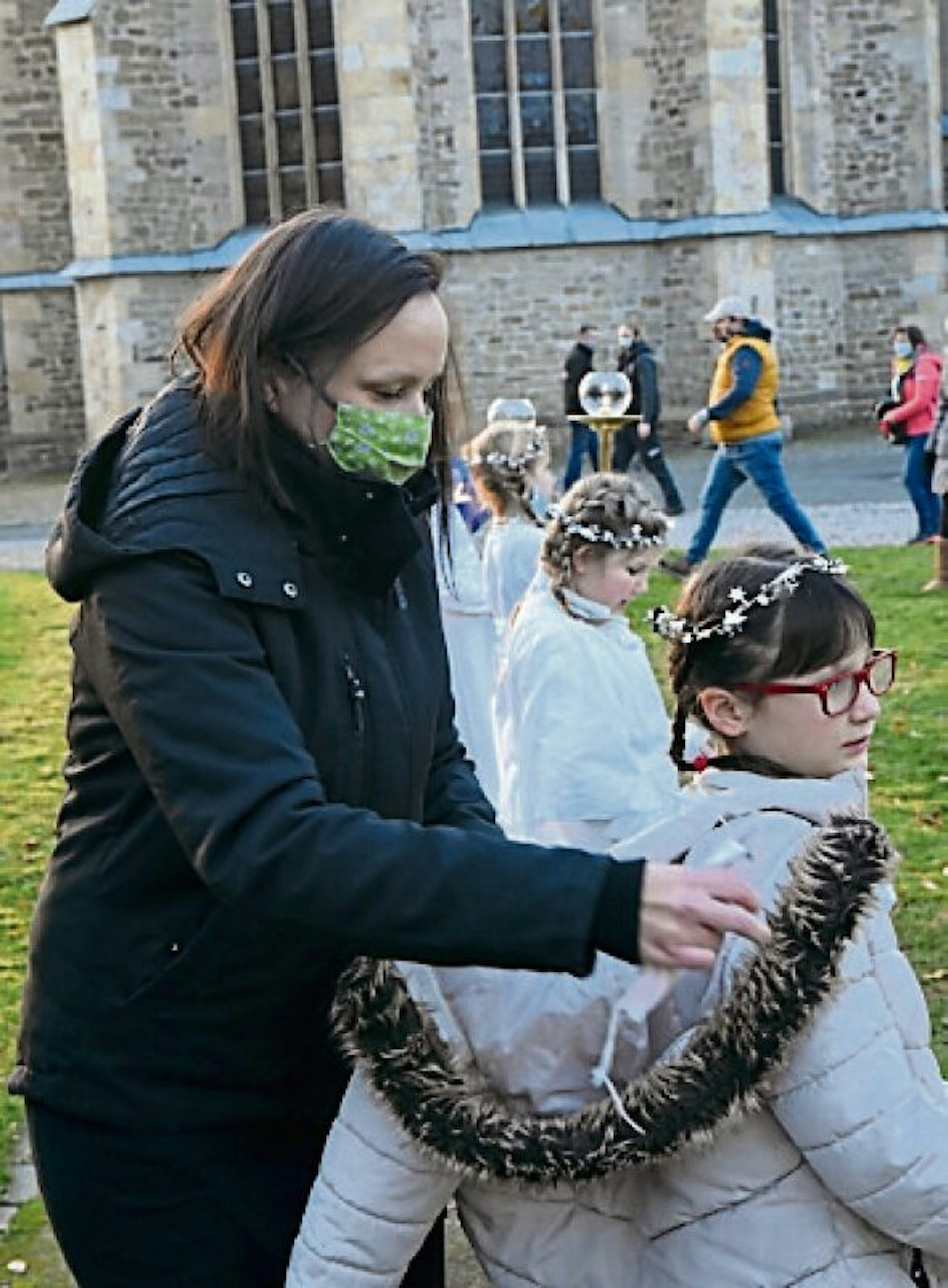Das Duo zeigte sich auch von den Eltern als „zuverlässiges und proaktives Helferteam“ angetan. Viele Elternteile wurden zu Assistenten ihrer Kinder. Hier noch schnell etwas zum Trinken bringen, Frisur und Sternenkranz bei den Engeln richten oder eine Jacke reichen, wenn es eine kurze Wartezeit gab.