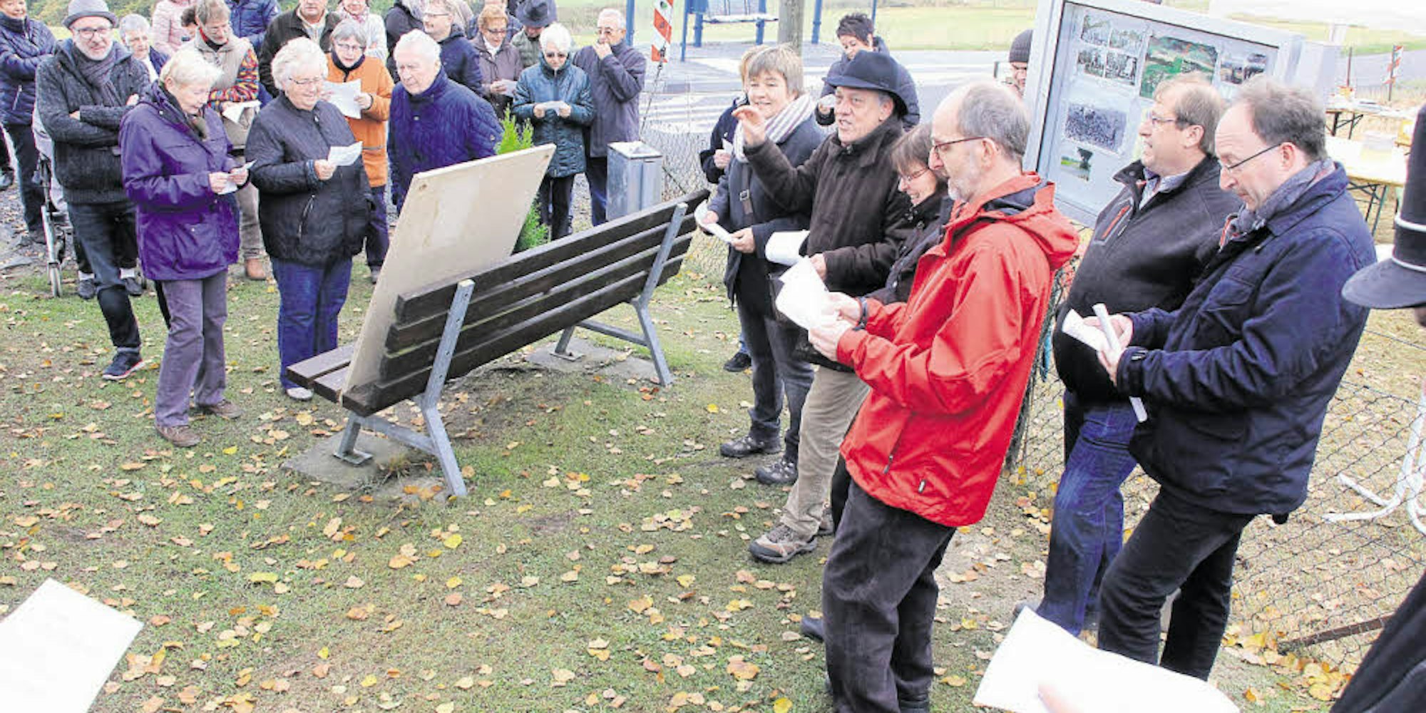 Gemeinsam sangen die Dorfbewohner das neue Hüchel-Lied zur Einweihung des Infokastens.