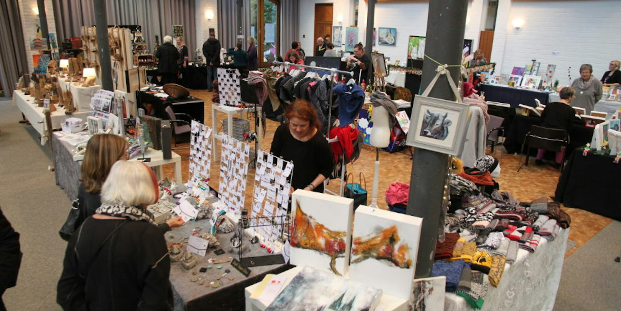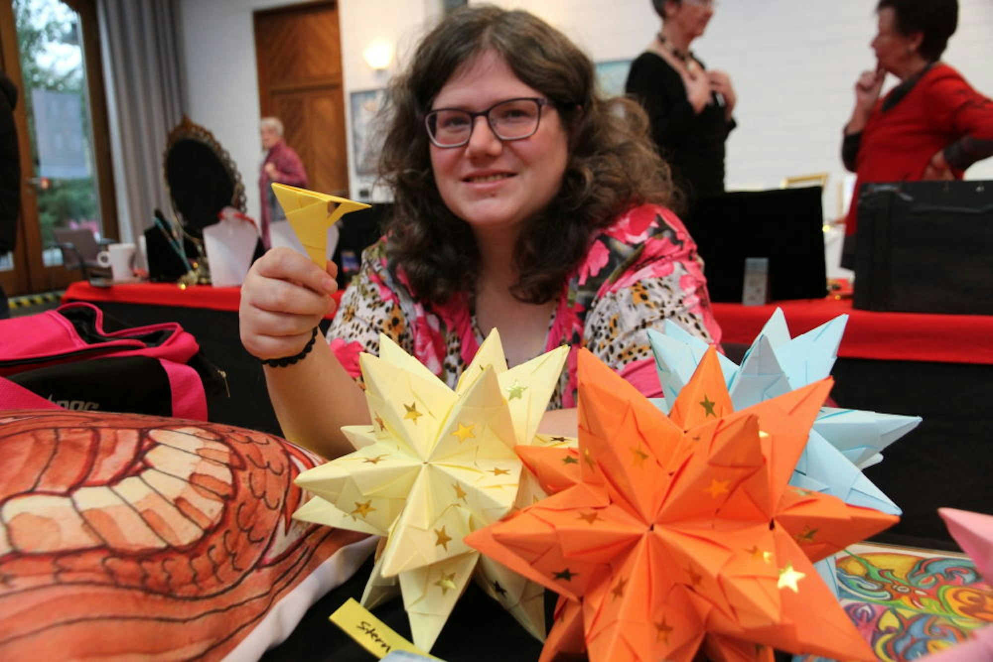 Hennef – Eine Stunde Zeit und viel Geschick und Fingerspitzengefühl, dann hat Karin Pickhardt aus quadratischen Papierblättern einen Stern vom Umfang eines Handballs gefaltet und zusammengesteckt, nach einem raffinierten System, in dem 30 Einzelteile einander Halt geben, Klebstoff ist unnötig. Die so genannten Bascetta-Sterne der Henneferin gehörten zu den vielen Artefakten, Kuriositäten und Geschenkideen, die der Künstler-Treff Hennef in der Meys-Fabrik zeigte. Insgesamt waren 21 Kunstschaffende bei der Ausstellung vertreten.
