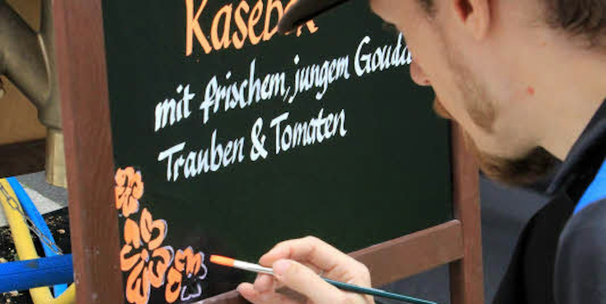 Hennef – Lukas Bohr ist Schildermaler aus Leidenschaft. Seine Kreidefarben mischt er sich selbst, dazu kommen Pinsel und Palette. Mehr braucht er nicht.