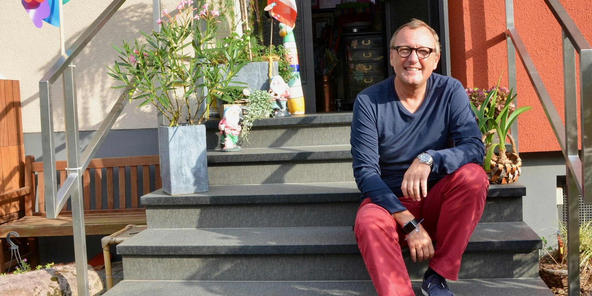 Ganz entspannt im Hier und Jetzt sitzt Karl-Heinz Land vor seinem Elternhaus in Striefen. Nach der Schule und den „überschaubaren Möglichkeiten“ zog er zunächst nach Bonn.