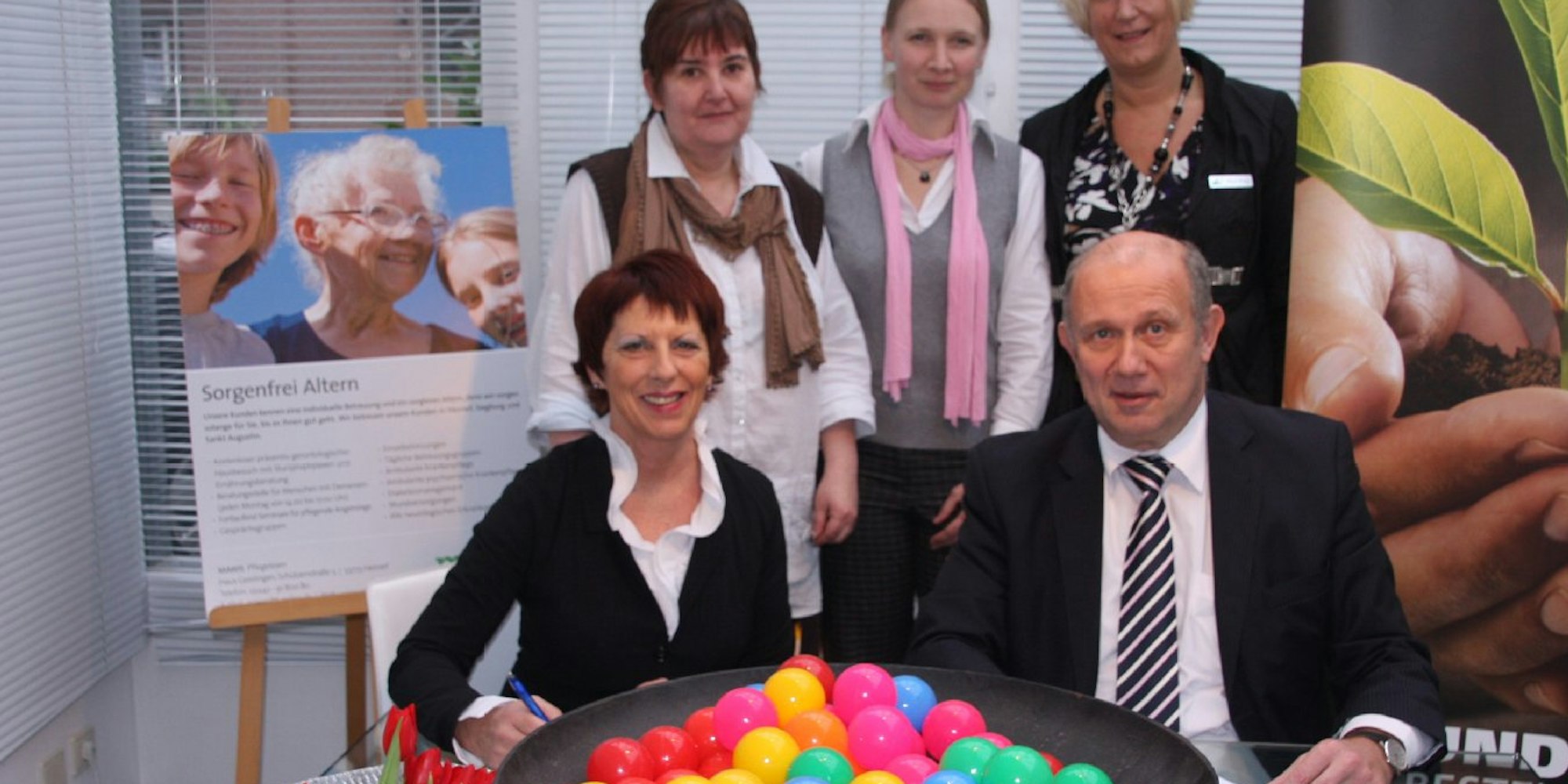 Margit Wisser (links) und Wilfried Müller unterzeichneten den Kooperationsvertrag, den Sonja Sturm, Clarissa Libowski und Petra Knipp (stehend, v.l.) im Alltag mit Leben füllen.