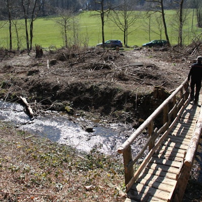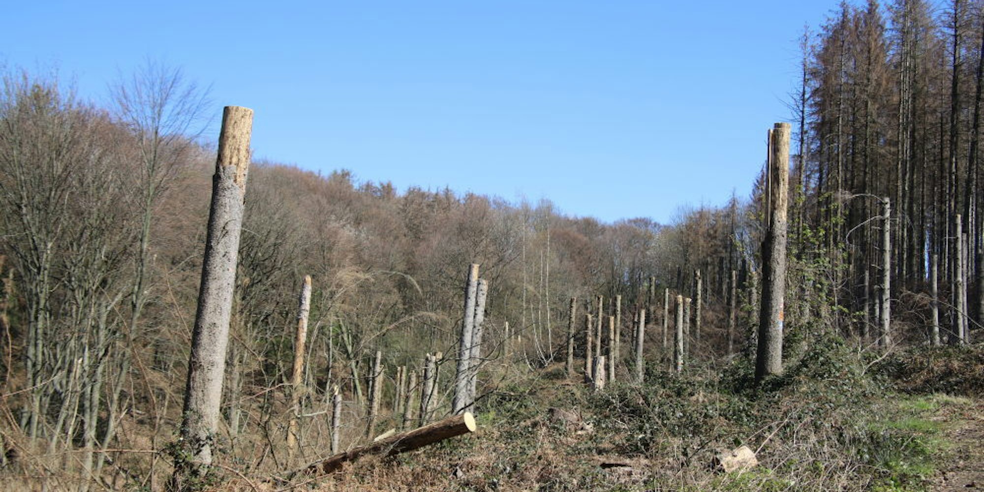 Natursteig SiegTote Nadelhölzer wurden gekappt nach Borkenkäferplage