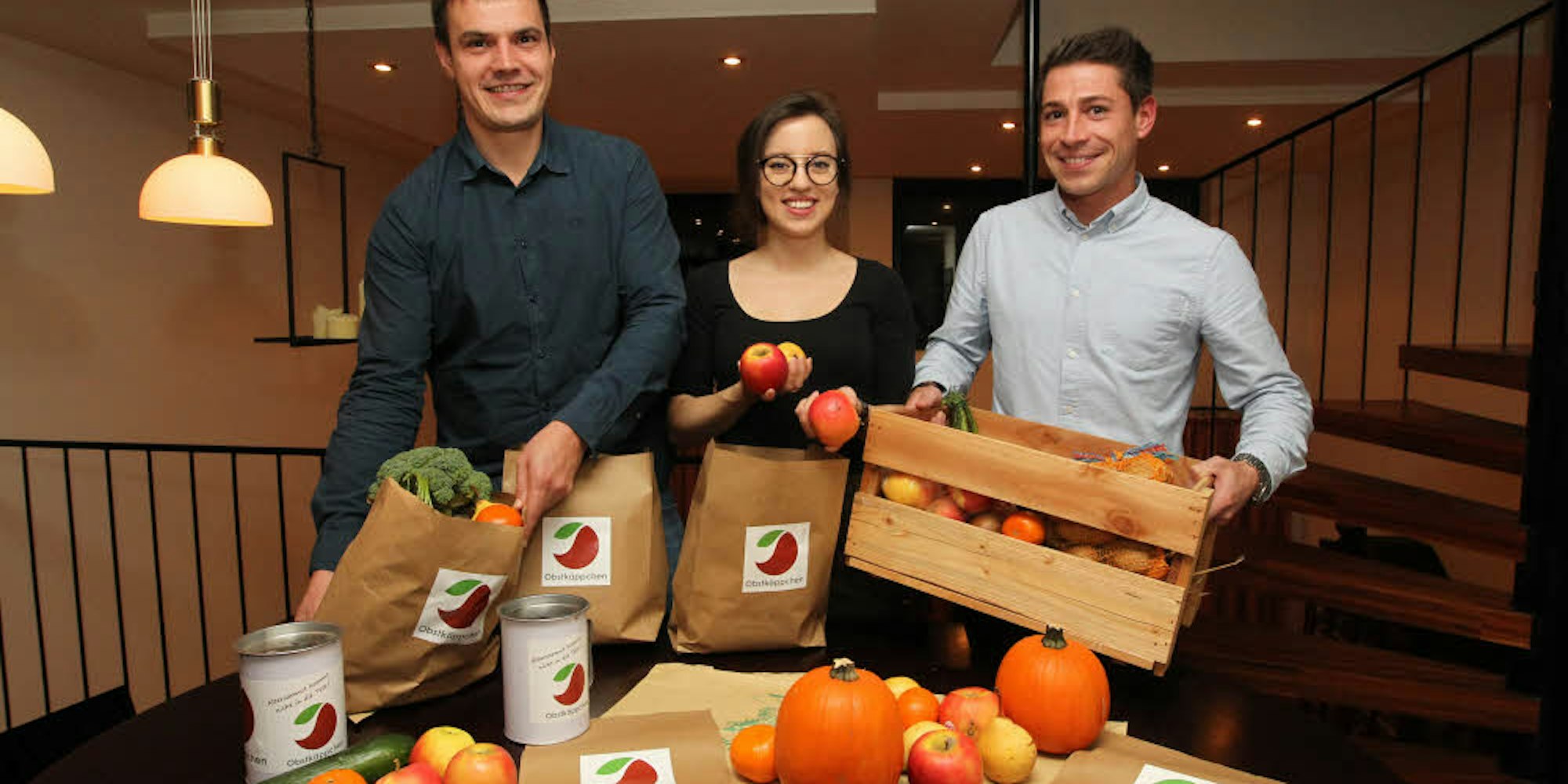 Obstkäppchen der ersten Stunde: (v. l.) Johannes Radschinski, Carina Raddatz und Christopher Kossack wollen im Dezember mit ihren Obstlieferungen beginnen.