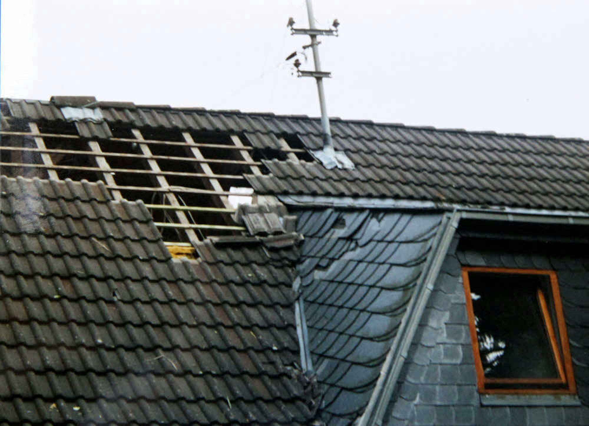 Das ramponierte Dach der Aldas: An mehreren Stellen hatte der Wirbelsturm Dachpfannen herausgerissen.