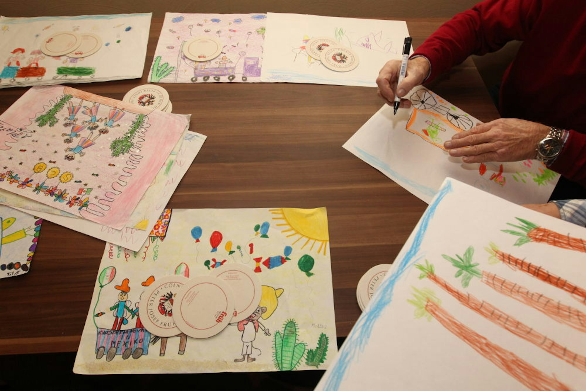 Vorstandsmitglied Willi Sommerhäuser, der zum 32. Mal die Sitzung auf die Beine stellt, hatte viel Vorarbeit geleistet und wird bis zur Sitzung am 16. Februar noch so manche Klinke putzen gehen. Sein Aufruf an den vier Kindergärten sowie den Grundschulen in Neunkirchen-Seelscheid brachte insgesamt 381 gemalte Bilder im Format DIN A3 ein. „Die Bilder mussten quer gemalt werden, damit sie auf die Plakate passen. Zudem mussten die Kinder Name und Alter beziehungsweise Klasse auf der Vorderseite vermerken“, erläutert Sommerhäuser.