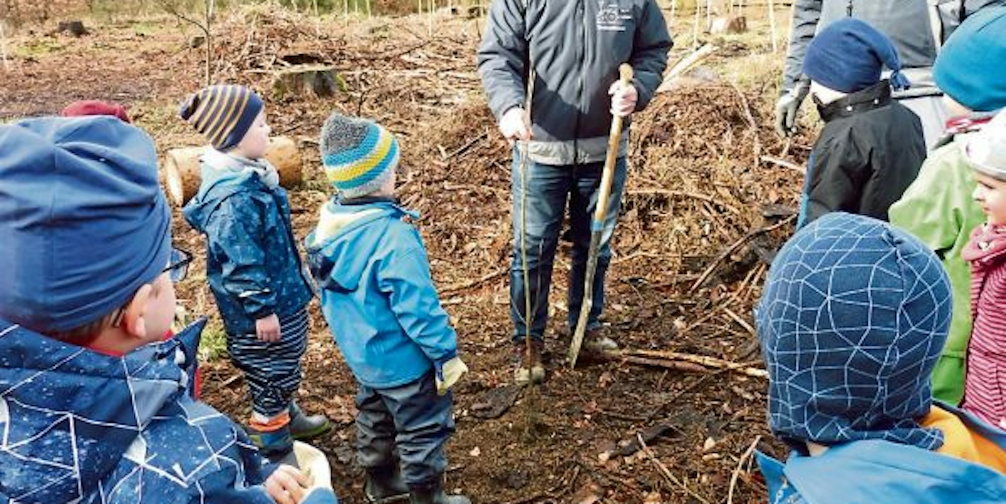 Auch Kindergartenkinder waren bei der Baumpflanzaktion des Heimat- und Geschichtsvereins Lohmar dabei.