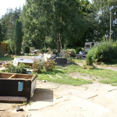Ein Bild der Verwüstung bot sich auf dem Campingplatz Aggerstrand in Peisel, der vor Kurzem geräumt worden ist.