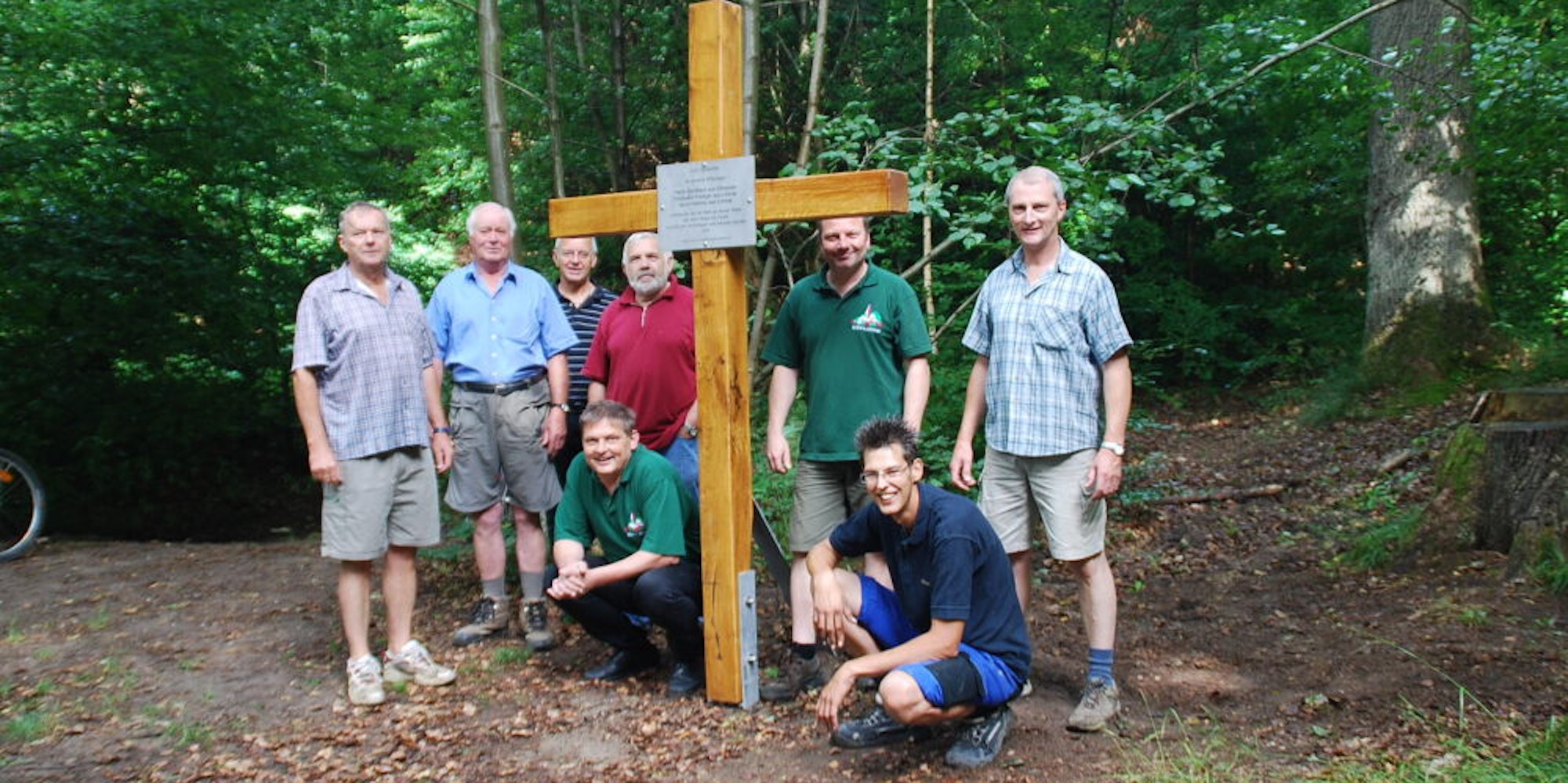 Das Team aus dem Heimat- und Geschichtsverein mit Initiator Gerd Streichardt (links) initiierte das Gedenkkreuz.