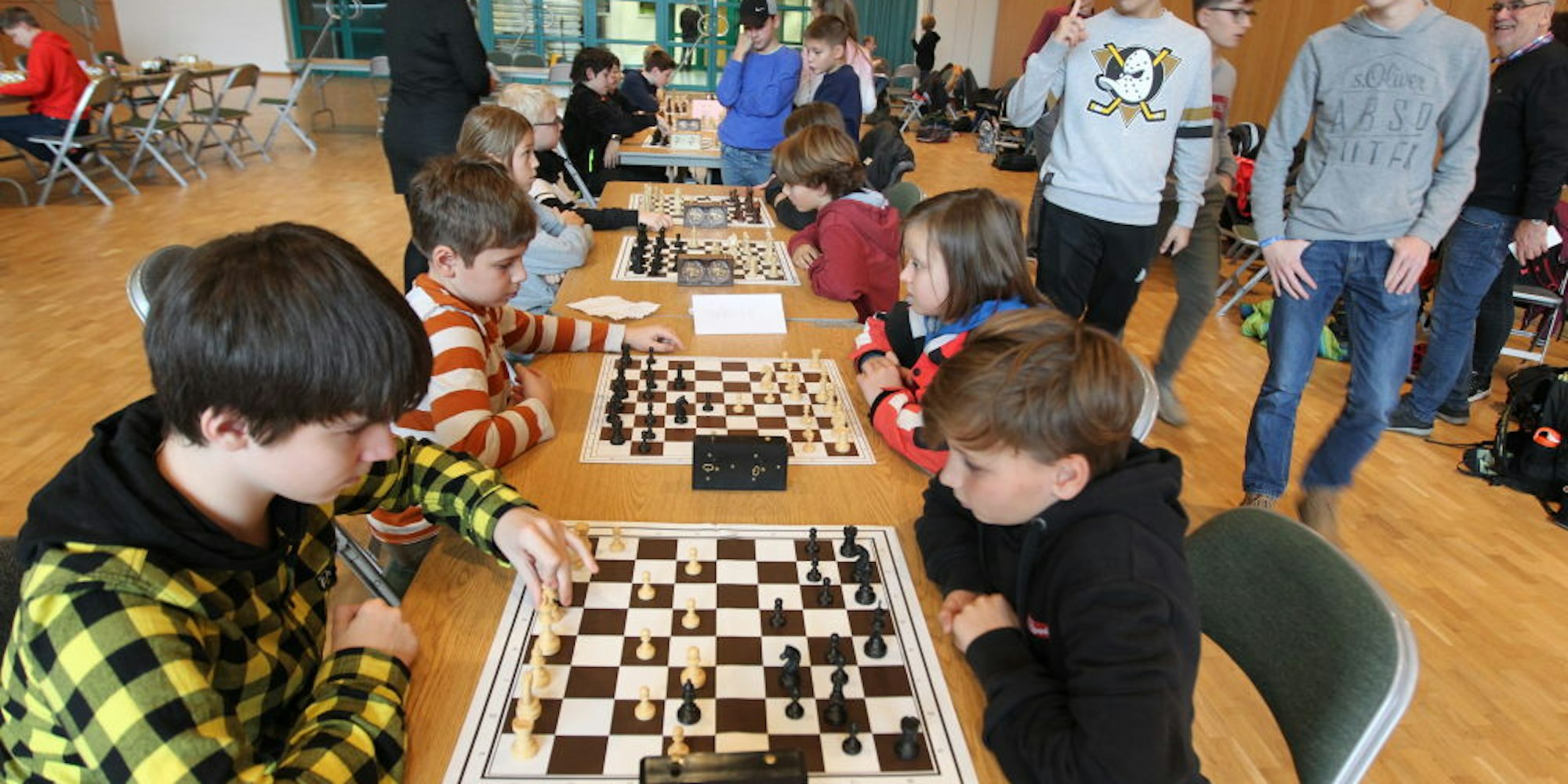 Die 20 Spiel-Sets inklusive Uhren hatten diesmal die Schachfreunde Lohmar zur Verfügung gestellt. „Normalerweise bringen die Schulen die Hälfte des Equipments mit“, berichtete der Turnierleiter.