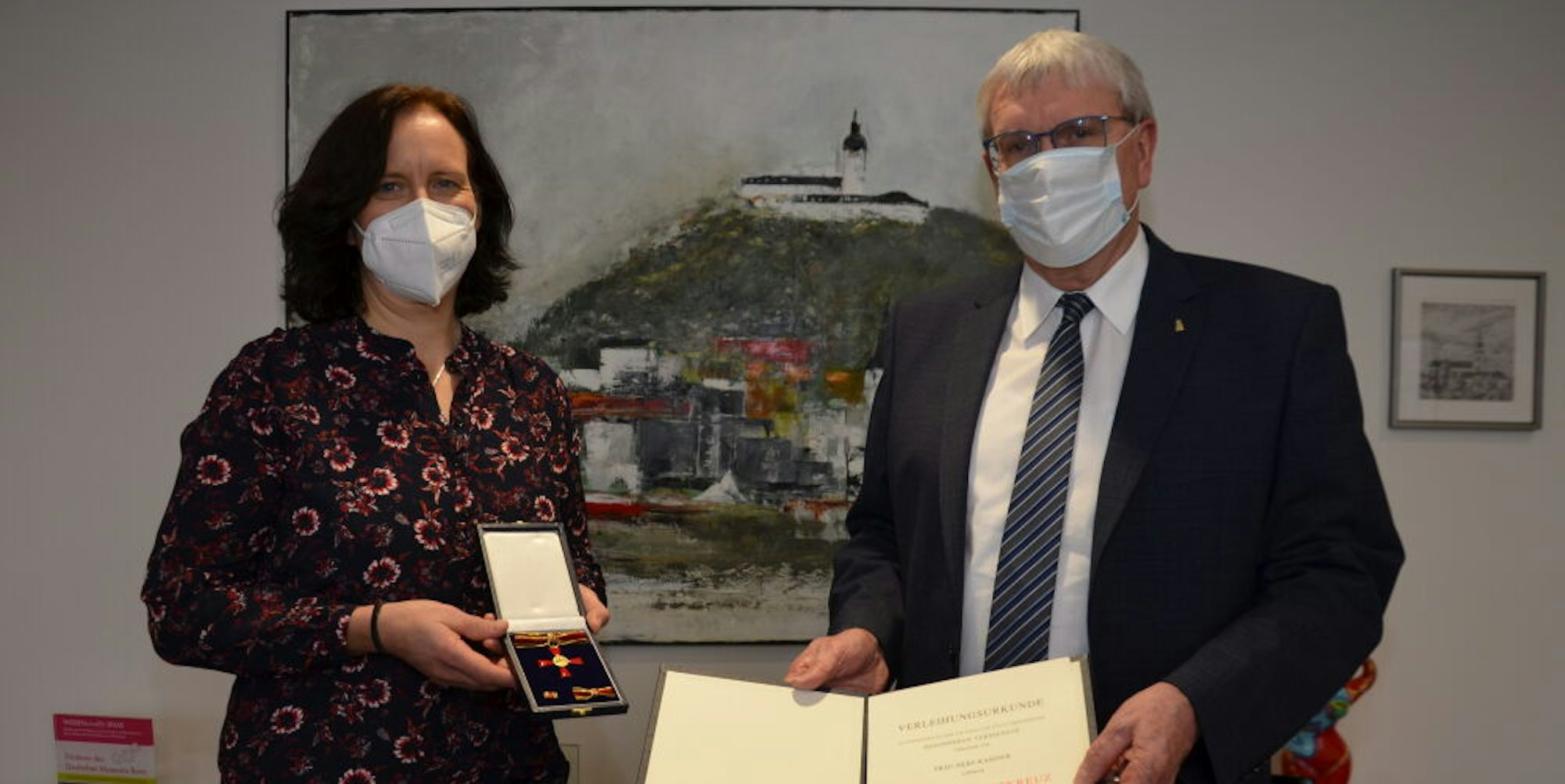 Lohmar – Sie kämpfte um Platz und Sieg und für einen fairen und sauberen Sport: Die frühere Wildwasserkanutin Silke Kassner erhielt jetzt das Verdienstkreuz des Verdienstordens der Bundesrepublik Deutschland. Die Ehrung fand im Büro von Landrat Sebastian Schuster pandemiebedingt im kleinsten Kreis statt, die Lohmarer Bürgermeisterin Claudia Wieja wurde mit einer Videobotschaft digital dazu geschaltet.