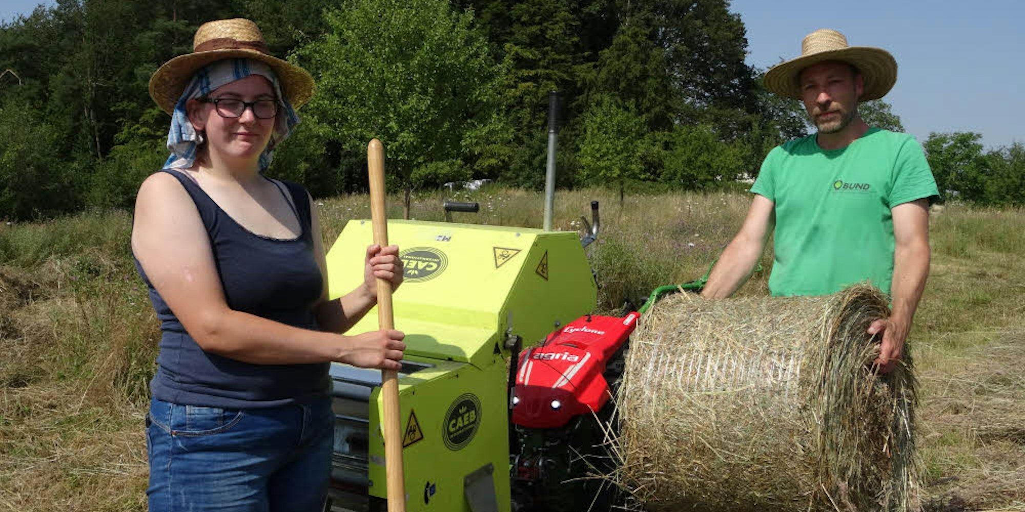 An der Heupresse: Alissa Seith und Achim Baumgartner vom BUND arbeiten für den Artenreichtum.
