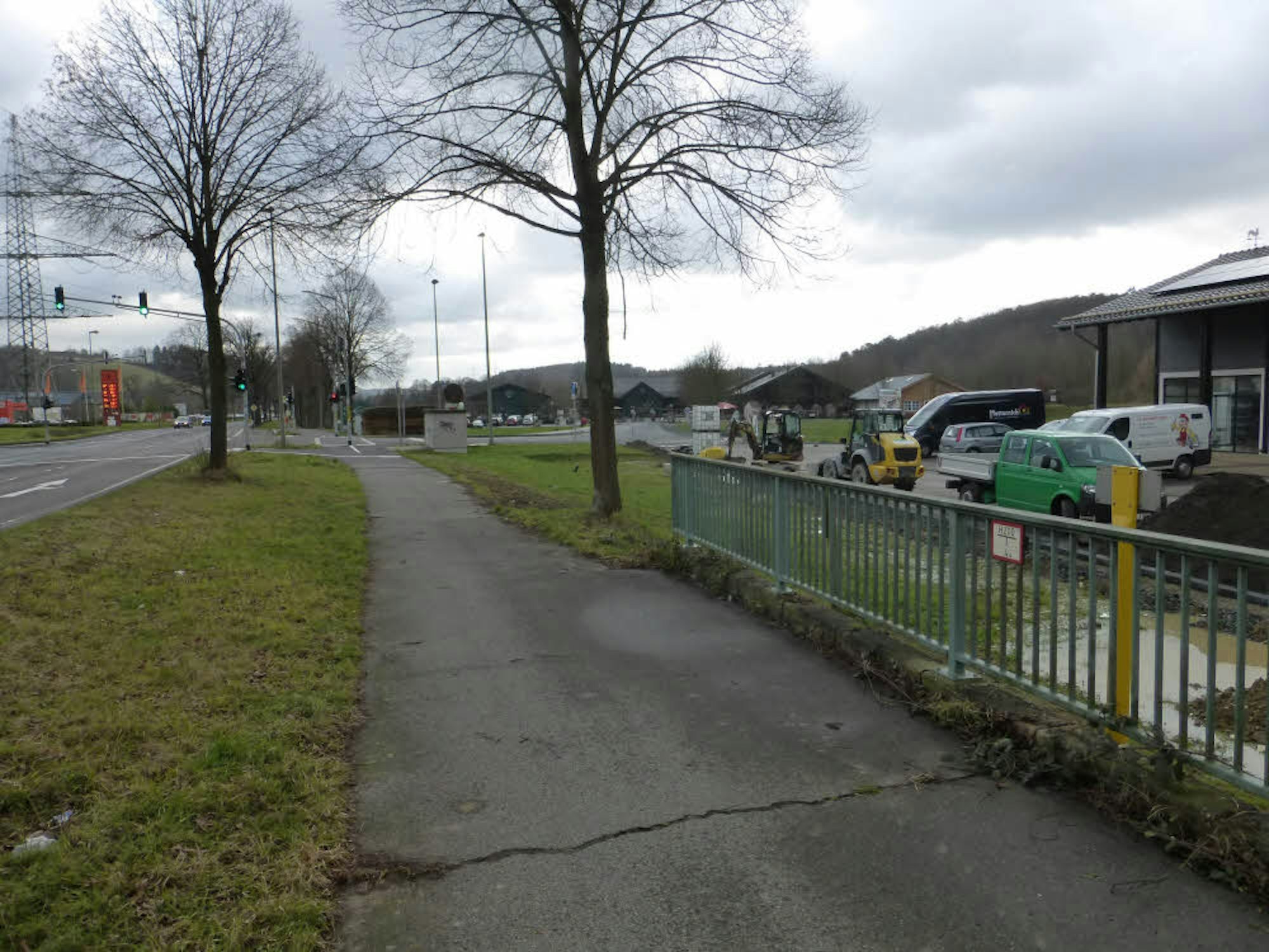 An der Ampel geht die Zufahrt zum Krewelshof (hinten) und zum neuen Geschäft des Bauernguts Schiefelbusch (rechts) ab.