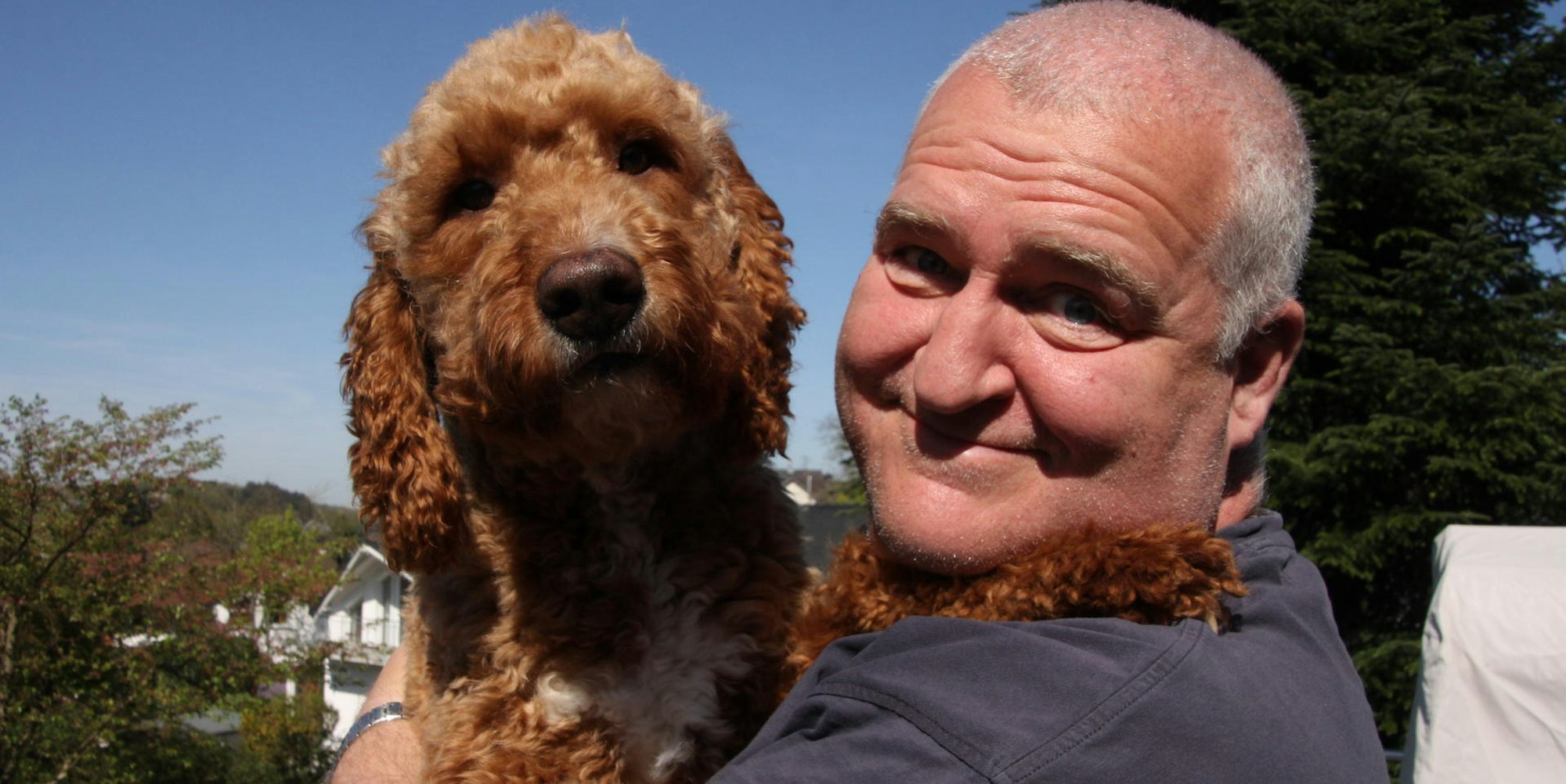 Der Comedian fühlt sich in Thomasberg mit seiner Familie und seinem Double Doodle „Buddy“ sauwohl.