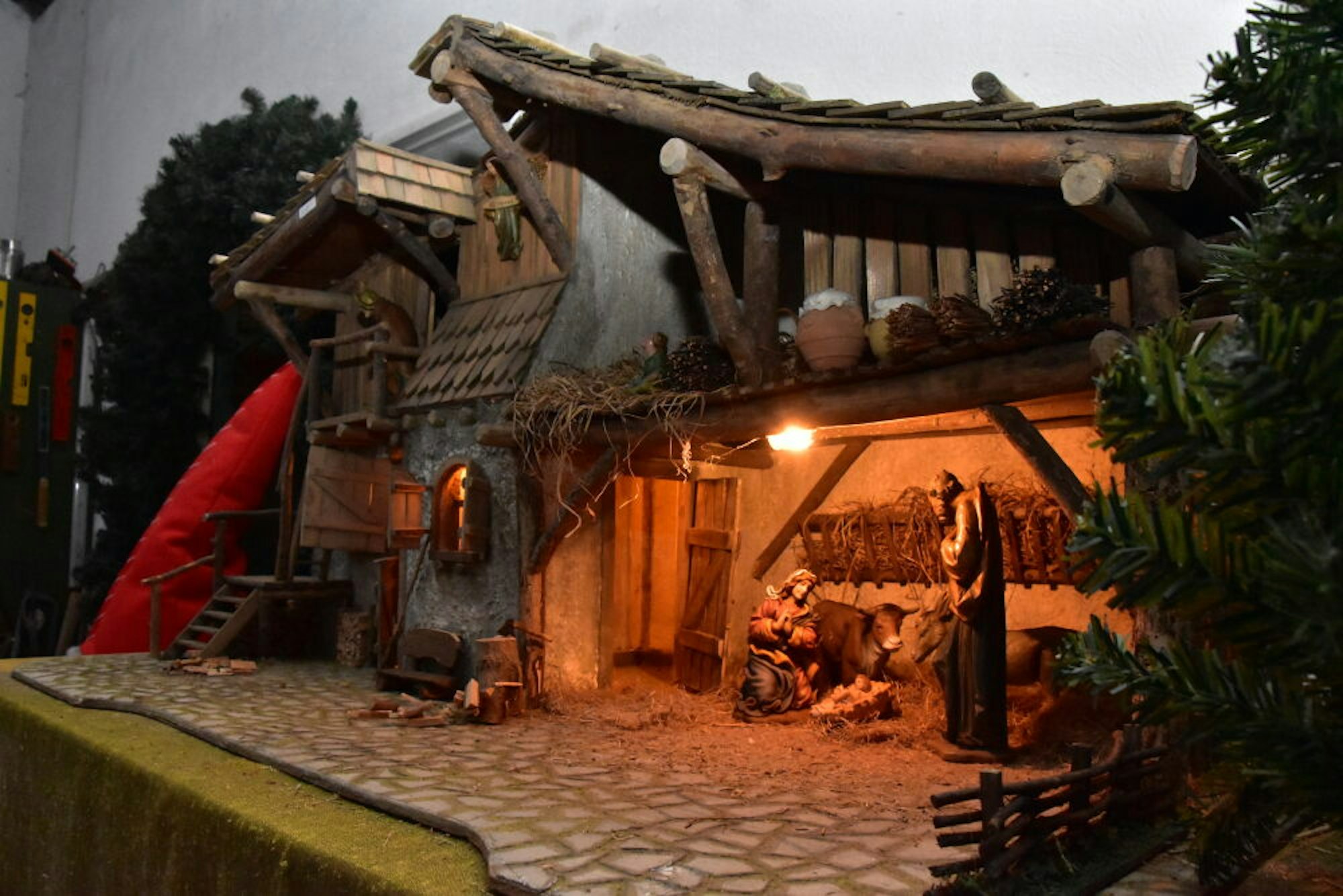 Nicht ganz so hochwertig wie ihre Pendants aus Italien, aber nicht weniger beeindruckend sind die übrigen Figuren in Schmitz’ Sammlung: Heilige Könige, einfache Hirten, Marien, Josephs Jesuskinder und natürlich Esel und Ochsen. Auch die verbliebenen Krippen können sich sehen lassen. In Handarbeit mit viel Liebe für so manches Detail hat Schmitz sogenannte Heimatkrippen gebastelt, Häuschen und Hütten, die eher ans Bergische Land als an den Orient erinnern.