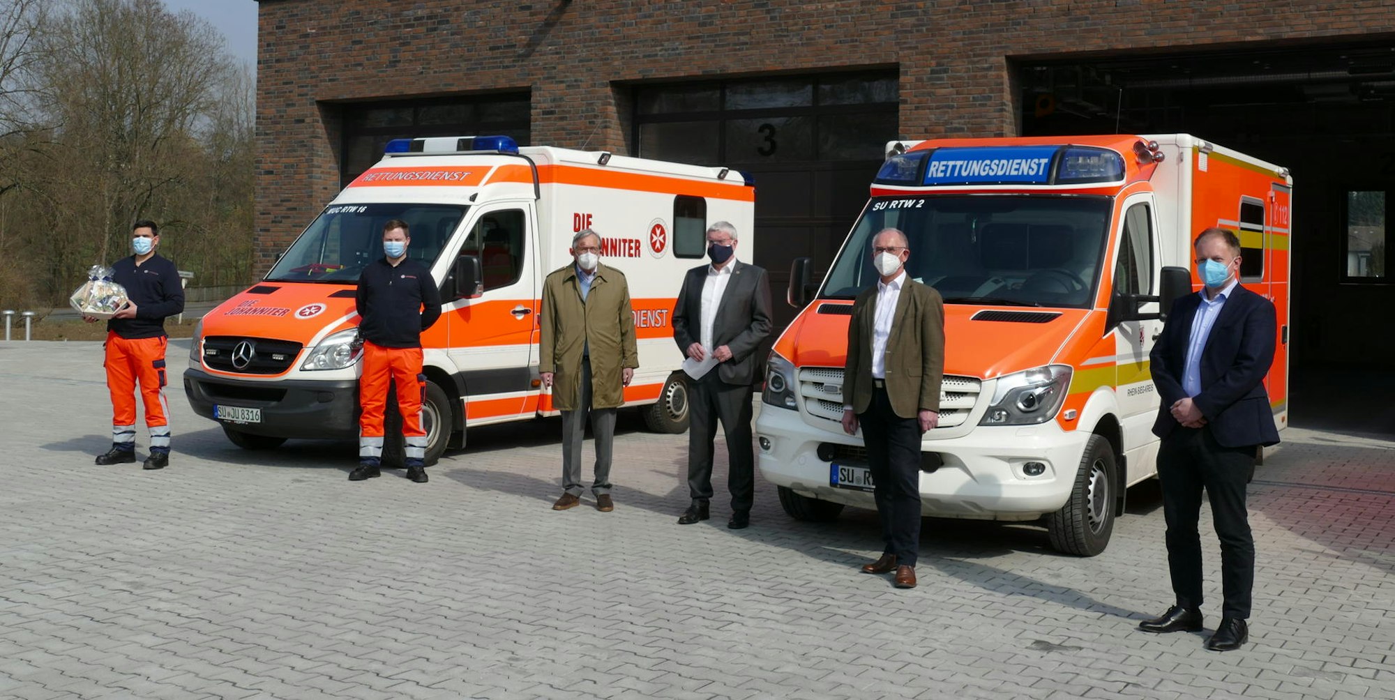 Much – Wenn jemand in Much einen Rettungswagen benötigt, startet dieser ab sofort von der neuen Rettungswache an der B 56 bei Niederwahn. Die Container-Anlage in der Zanderstraße, die acht Jahre lang als Provisorium fungierte, hat damit ausgedient. In dem hochmodernen Gebäude stehen den Mitarbeitern Aufenthalts- und Ruheräume zur Verfügung. Bürgermeister und Landrat eröffneten die Wache im Beisein von weiteren Verantwortlichen. „Der öffentlichen Hand wird ja oft unterstellt, ihre Bauprojekte würden zu lange dauern – davon kann hier keine Rede sein“, lobte Landrat Sebastian Schuster den schnellen Baufortschritt.