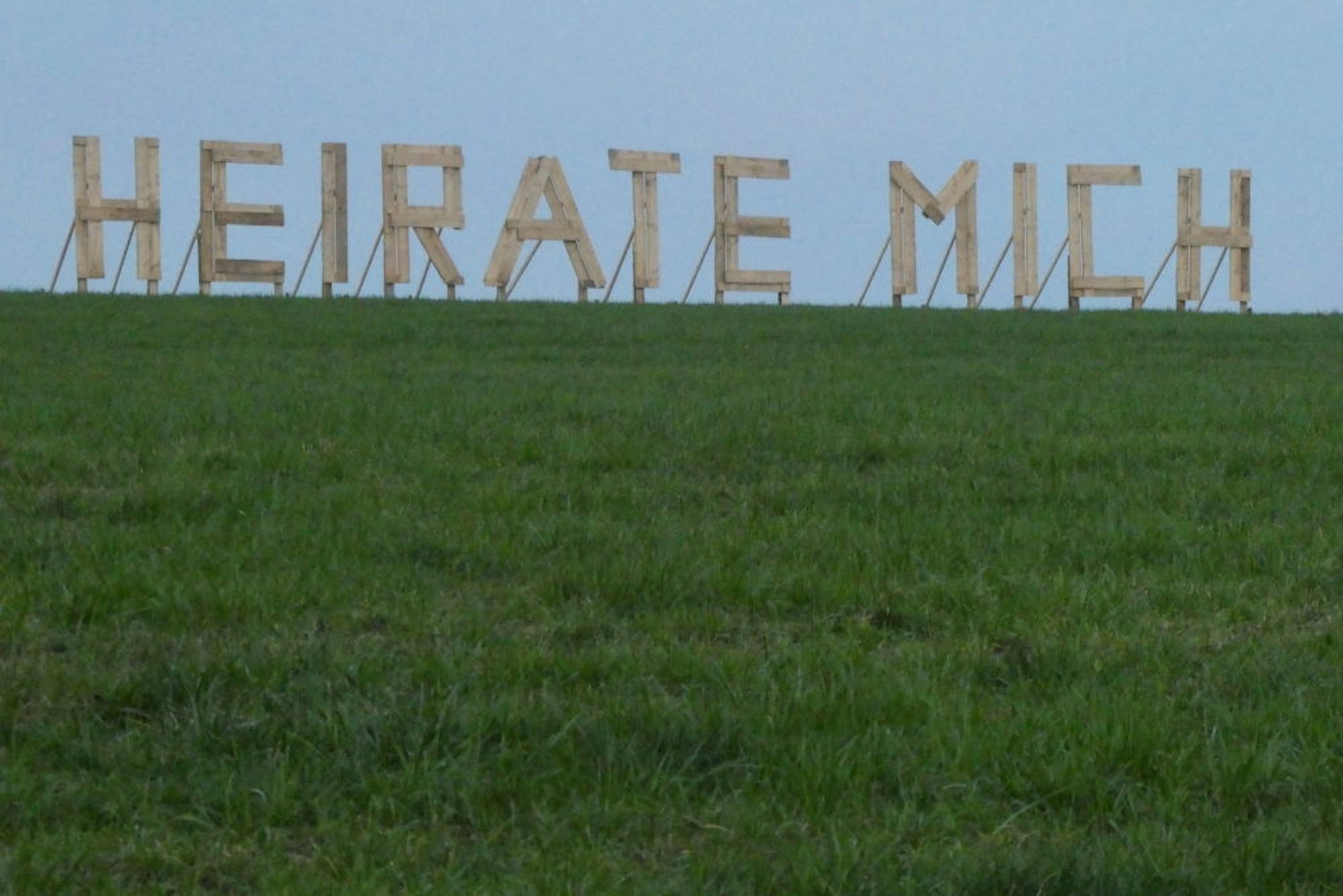 Much/Ruppichteroth – Als Matthias Müller seine Marie-Therese Schumacher an jenem Montagmorgen einlud, mit zum Haus ihres Großvaters in Bröleck zu fahren, ahnte die 29-Jährige noch nicht, dass dieser Tag ein besonderer in ihrem Leben werden würde. Die junge Frau ist die Unbekannte, für die der Schriftzug „Heirate mich“ bei Bröleck aufgestellt worden war. Diesen hatte Leser Wilfried Hoss, wie berichtet, entdeckt und fotografiert.