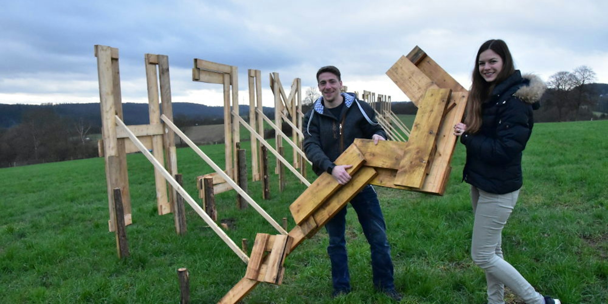 Ein Fragezeichen, das an dem fraglichen Montag noch am Ende des Schriftzuges gestanden hatte, montierte Marie-Therese Schumacher eigenhändig noch am selben Tag ab. Für sie und Matthias Müller steht fest: Im Sommer wird geheiratet. Kennengelernt hatten sich die beiden Ruppichterother vor rund sieben Jahren durch Freunde. Sie arbeitet als Einkäuferin bei einer Firma im oberbergischen Wiehl, er als Maschinenbau-Ingenieur in Ruppichteroth. Vor drei Jahren zogen sie zusammen. Als Matthias Müller im Sommer seinem zukünftigen Schwiegervater half, Bäume zu fällen, ahnte er noch nicht, wozu er die Bretter noch brauchen würde.