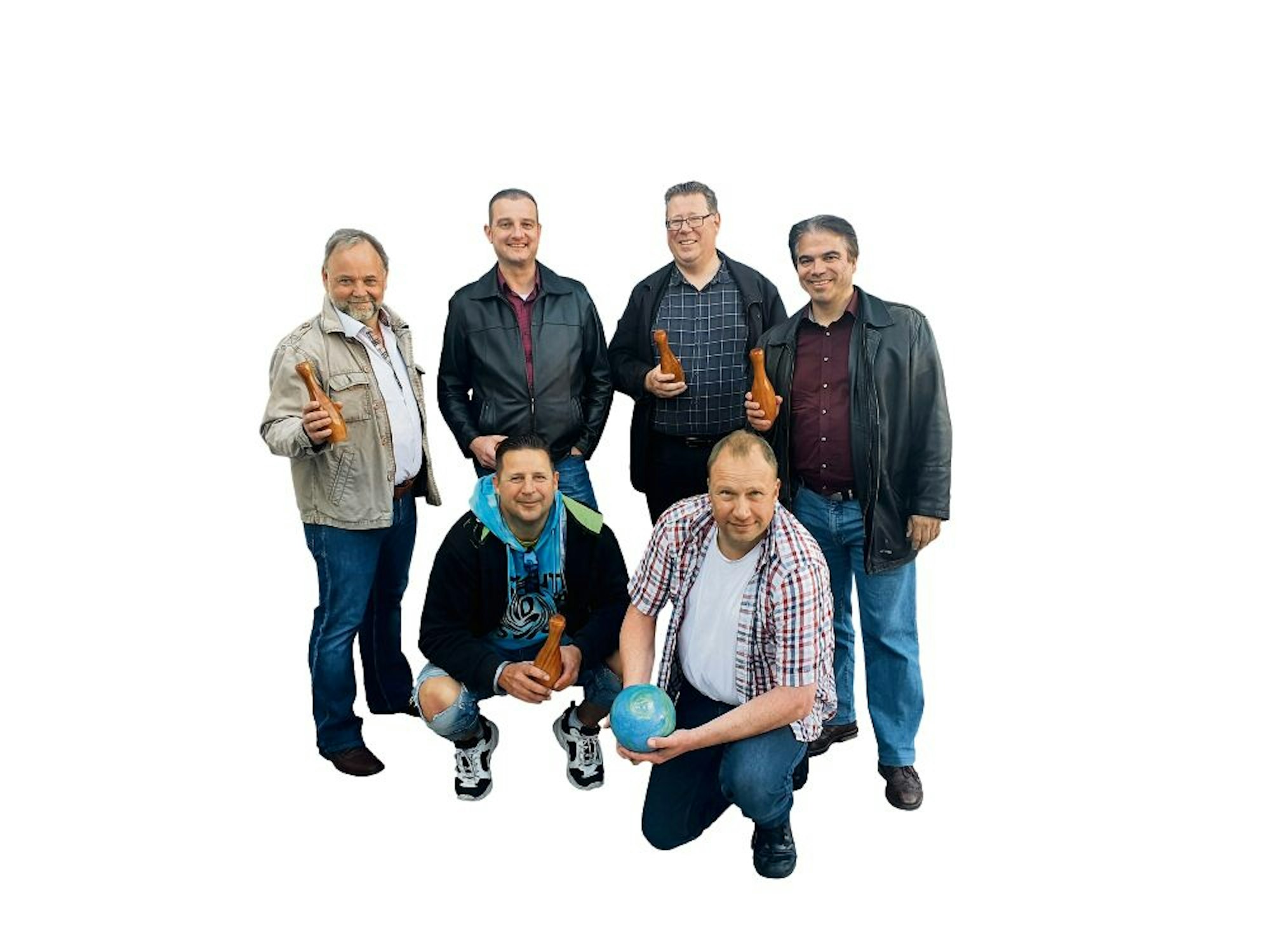 Sechs Kegelfreunde sind gemeinsam kreativ.