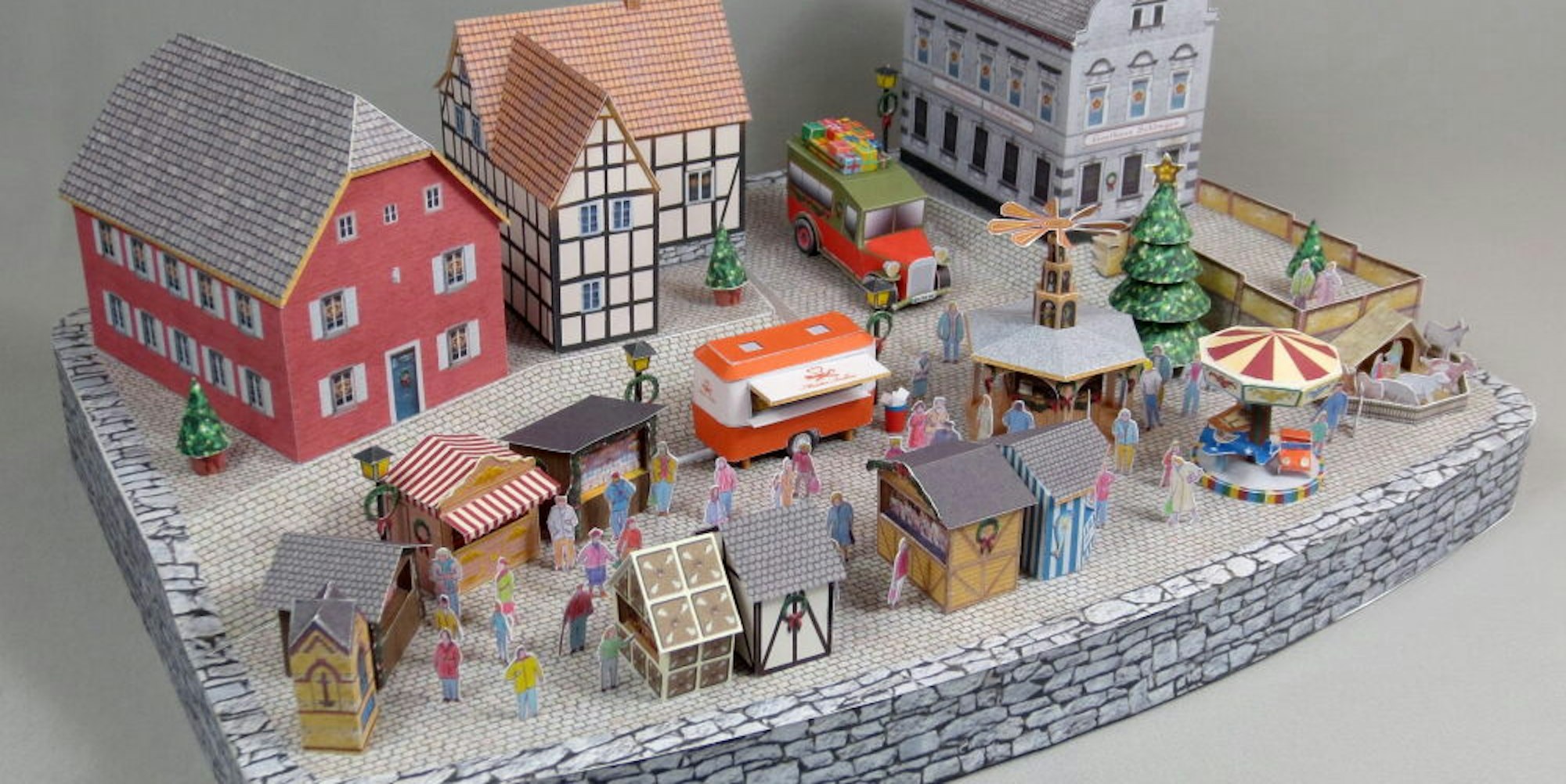 Mit mehr als 43 500 Downloads ist „Der Weihnachtsmarkt in der Rheinallee“ das beliebteste Modell der Bastelvorlagen.
