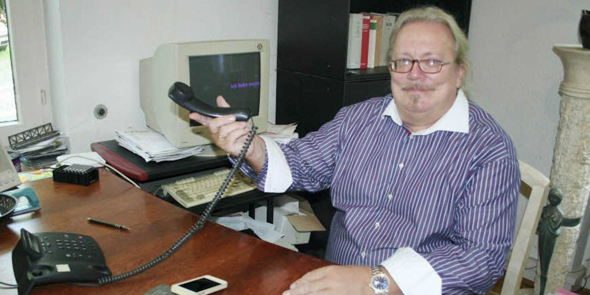 Rechtsanwalt Frank-Michael Volkmann ist schon seit drei Wochen ohne Telefon und Internet. Der Jurist – „zu mir kommt man, wenn man nicht weiter weiß“ – hat die Nase von nervenden Zeitfressern in Warteschleifen der Telekom voll und ist jetzt in die Offensive gegangen. „Ich habe eine einstweilige Verfügung gegen die Telekom auf Ausführung der Reparaturarbeiten erwirkt“, so der verärgerte Jurist. Sie wird nun per Gerichtsvollzieher dem Unternehmen zugestellt. „Wenn dann nichts passiert, lege ich mit einem Ordnungsgeld in fünfstelliger Höhe nach. Auch als kleiner Verbraucher ist man nicht hilflos“. Der Anwalt hat in seinem Schriftstück sechs Seiten akribisch aufgelistet, wie er von der Telekom „hingehalten wird“. Ein wertvoller Zeuge ist dabei seine Rechtsanwaltsfachwirtin Heike Schneider. Da sind versprochene Rückrufe der Telekom dokumentiert, die nie erfolgten oder auch Erdarbeiten angekündigt, die nie statt fanden. „Ich bin gespannt, wie es jetzt weitergeht“, sagt Frank-Michael Volkmann, der schon seit 15 Jahren im Haus seine Praxis hat. „So etwas habe ich während dieser Zeit noch nie erlebt“.