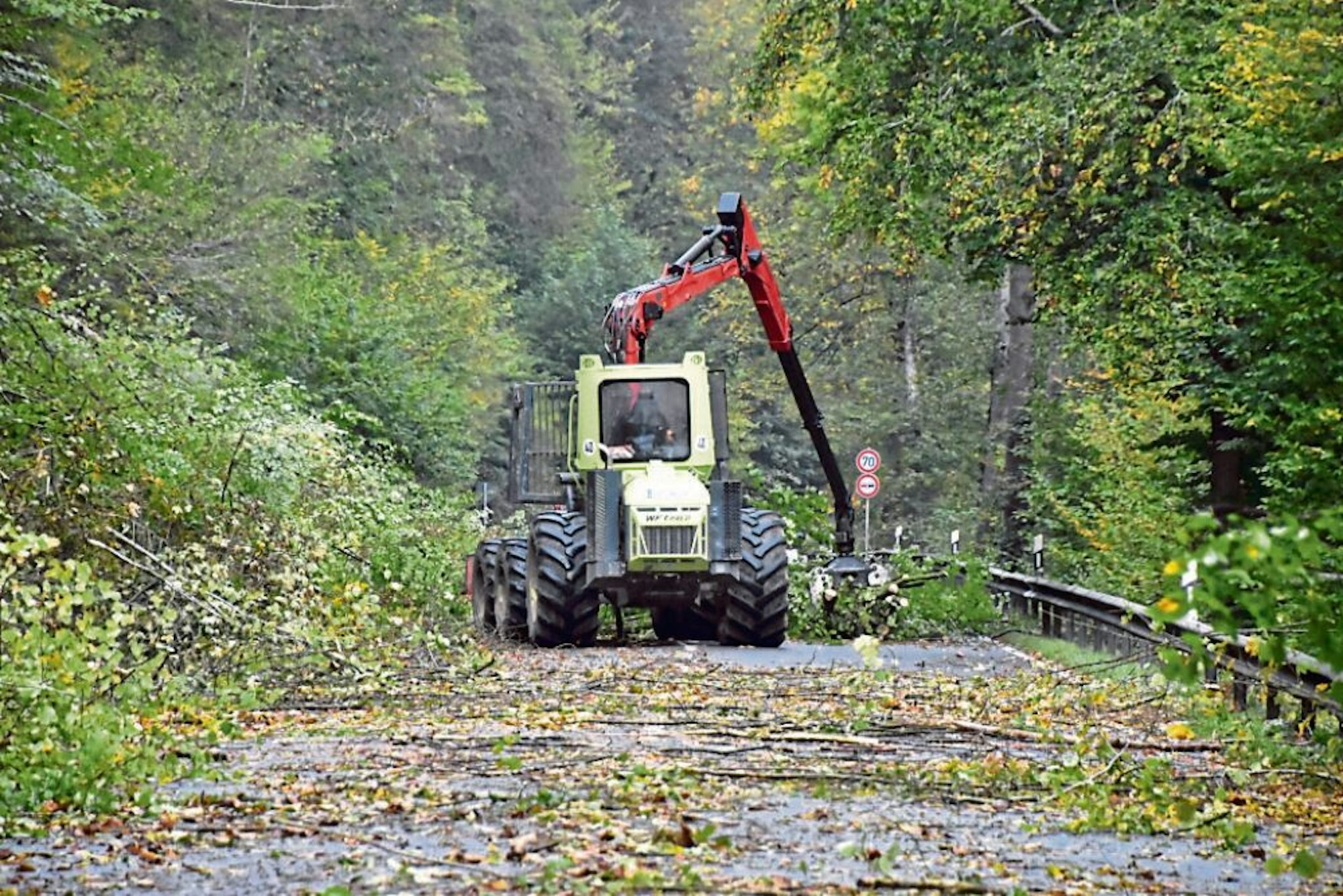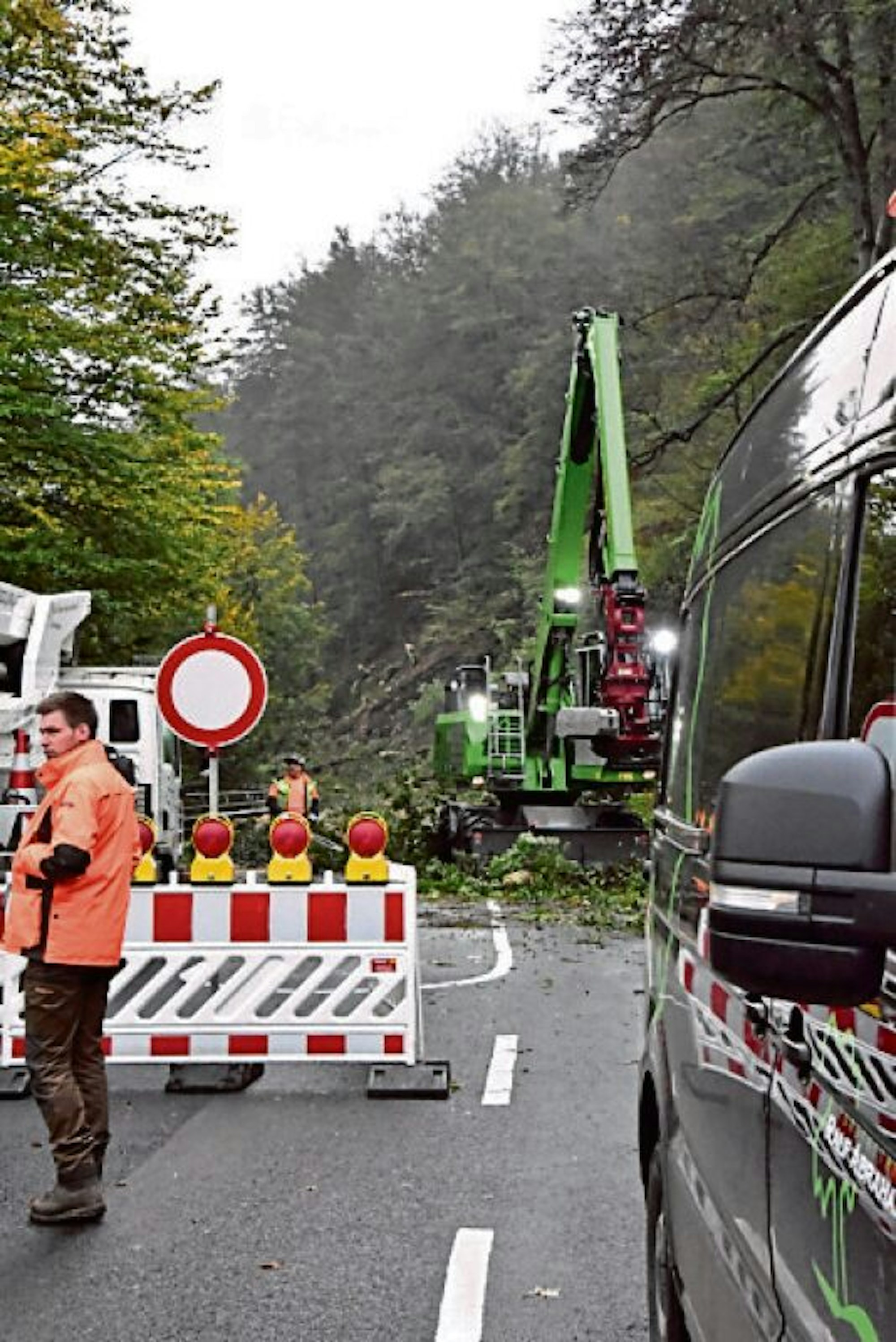 Bäume, die auf die Straße zu stürzen drohen, werden in den Herbstferien gefällt. Die Bundesstraße 478 ist derweil komplett gesperrt.