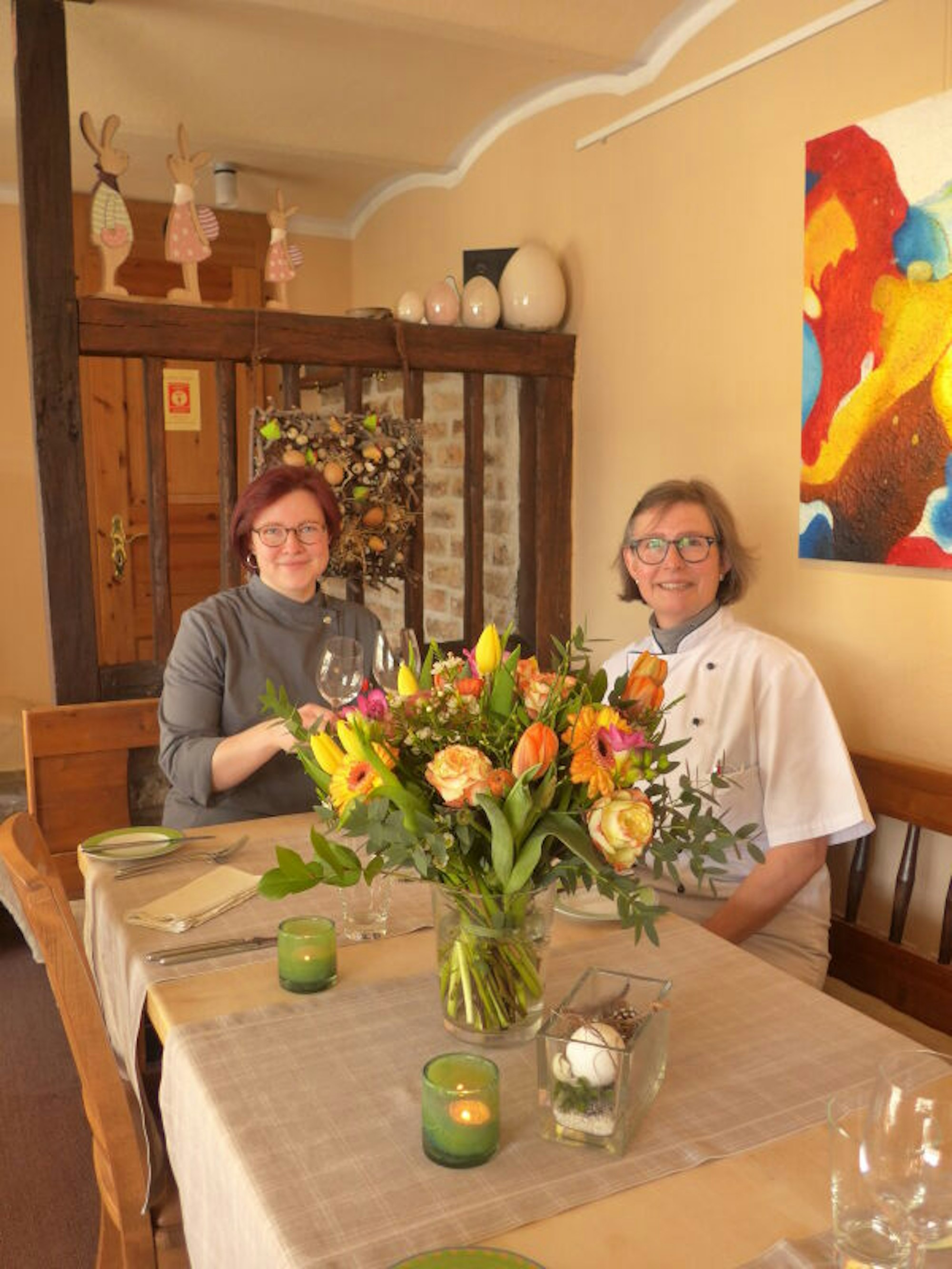 Gabi Radermacher und Köchin Johanna Budweg vom Restaurant „Zur Scheune“.
