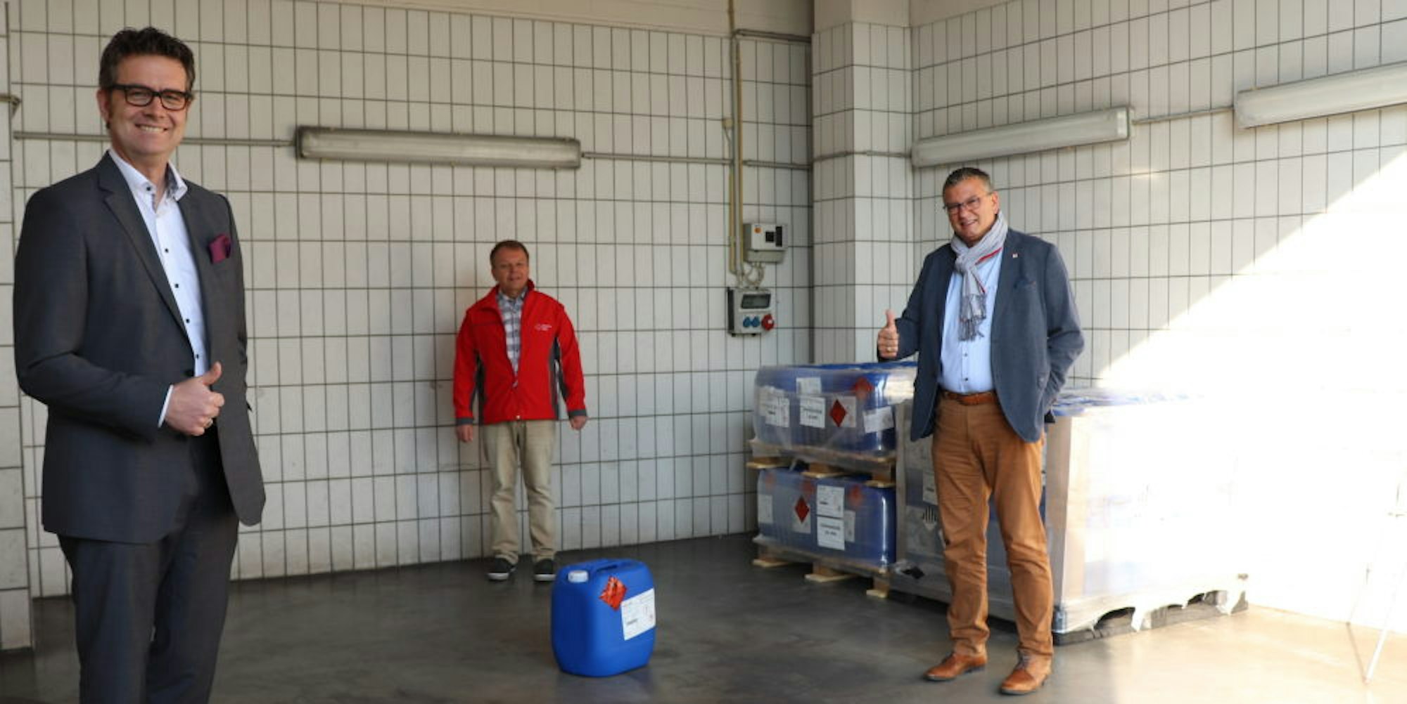 1000 Liter gehen an die Stadt, 1300 an den Krisenstab des Kreises. „Dieses kann nun unter anderem an medizinische und städtische Einrichtungen verteilt werden, da diese Desinfektionsmittel am dringendsten benötigen“, sagt Arndt Selbach, der Leiter des Evonik-Standorts in Lülsdorf.