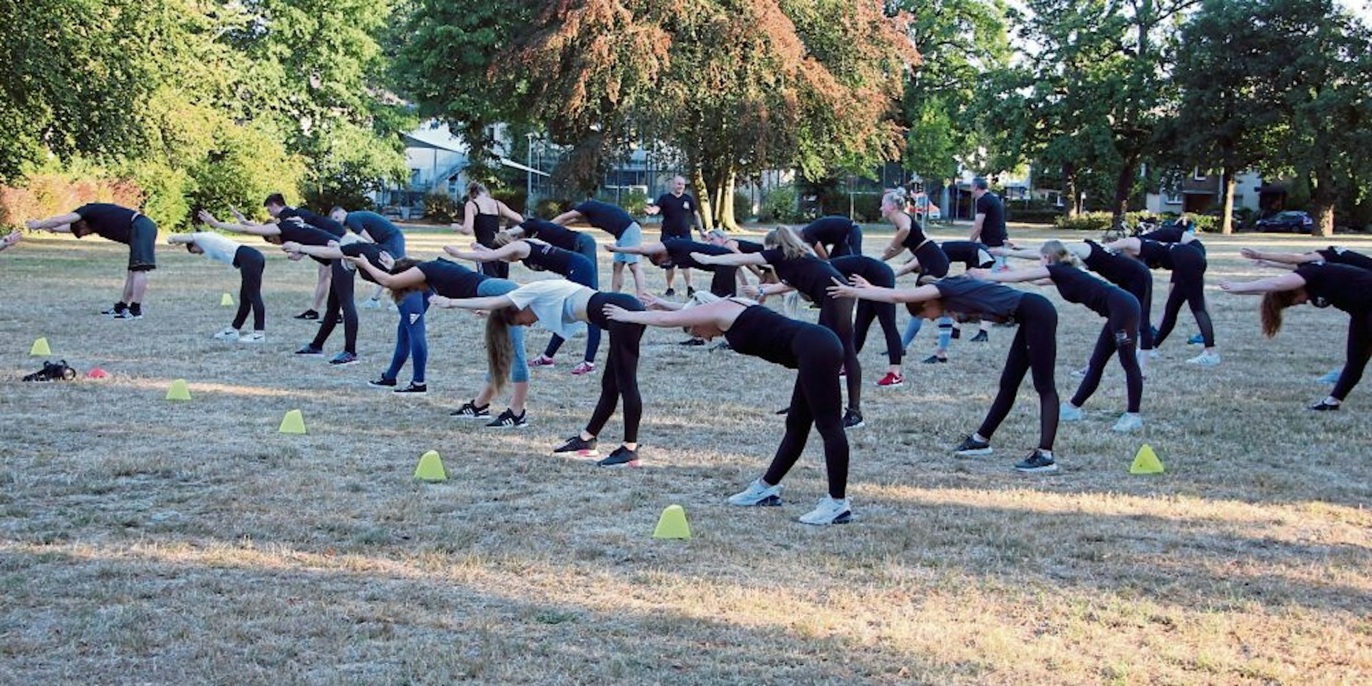 Auf dem Rasen vor Burg Wissem trainieren die Fidelen Sandhasen. Im Freien sind die Corona-Regeln nicht so streng wie in der Halle.