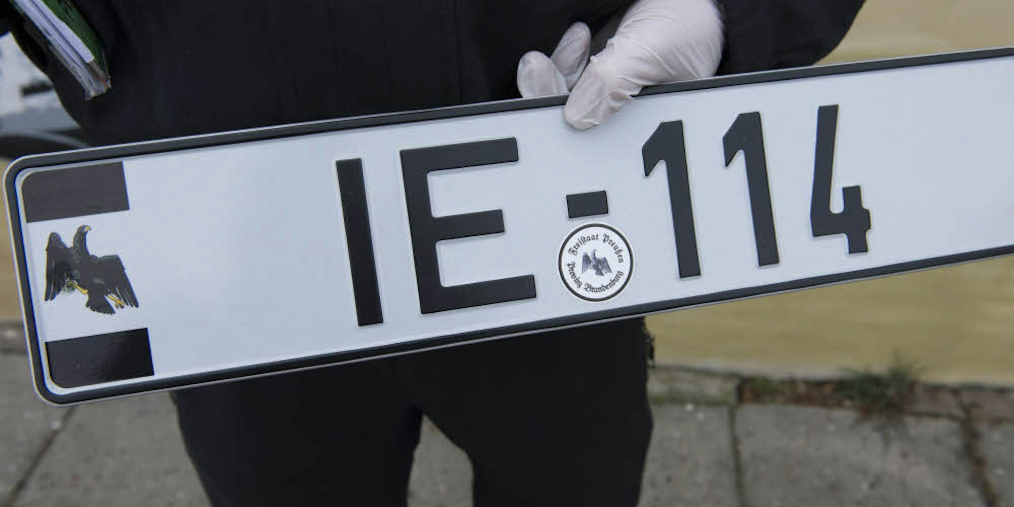 Mit Adler und vermeintlich amtlichem Siegel: Der Freistaat Preußen gibt sogar eigene Nummernschilder heraus.