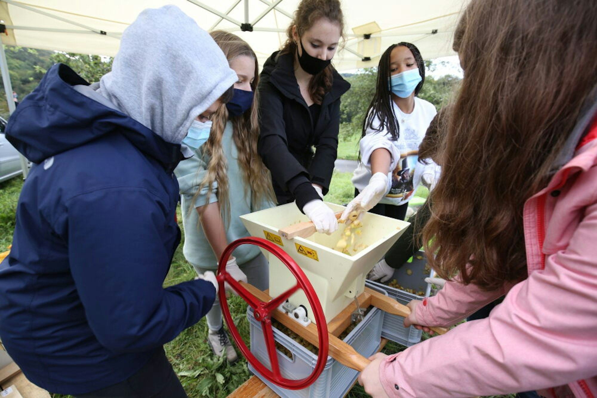 Lecker und süß war der Saft, den die Schülerinnen und Schüler im Mucherwiesental pressten.