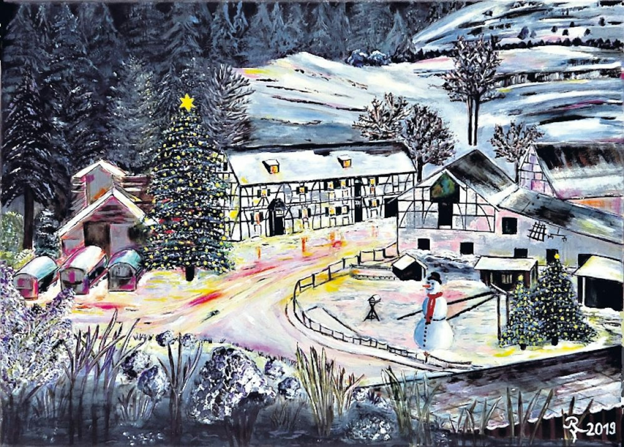 Die Idee, einen Adventskalender mit Gewinnchancen zu erstellen und zum Stückpreis von fünf Euro zu Gunsten guter Zwecke zu verkaufen, wird wieder vom Lions Club Lohmar umgesetzt. Das Motiv – eine weihnachtliche Winterlandschaft bei Nacht – hat die Lohmarer Künstlerin Rosemarie Hüttemann gemalt und für den Kalender bereitgestellt.