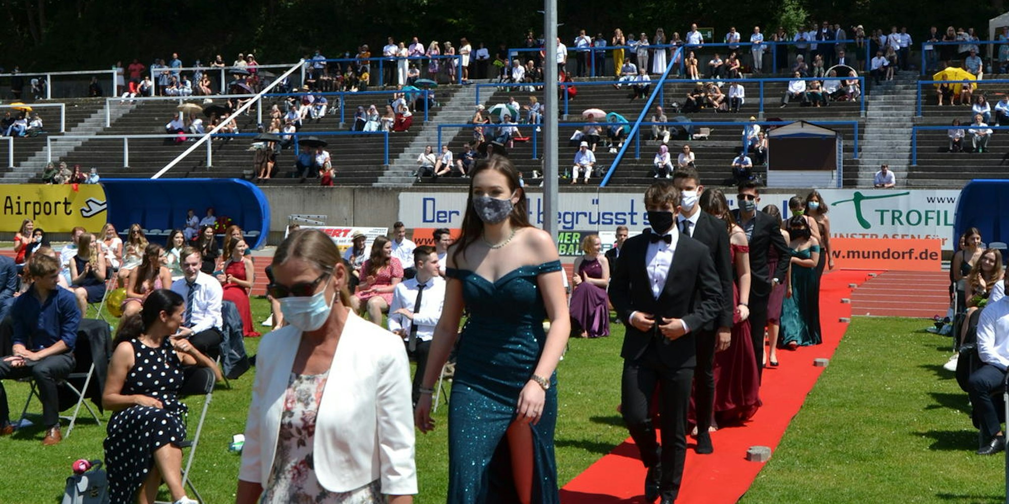 Das Gymnasium Alleestraße Siegburg brachte einen Hauch von „Royal Ascot“ ins Walter-Mundorf-Stadion: Schicke Hüte, elegante Kleider und Anzüge wurden bei strahlend schönem Wetter auf gepflegtem Rasen gesehen. 102 Absolventinnen und Absolventen nahmen ihre Zeugnisse entgegen, für die besten des Jahrgangs gab es eine besondere Auszeichnung. Paula Novotny, Mona Reichmann und Pia Sasse legten ihr Abitur mit dem Notendurchschnitt 1,2, Ronja Hock mit 1,1 und Jan Hennes sogar mit 1,0 ab.