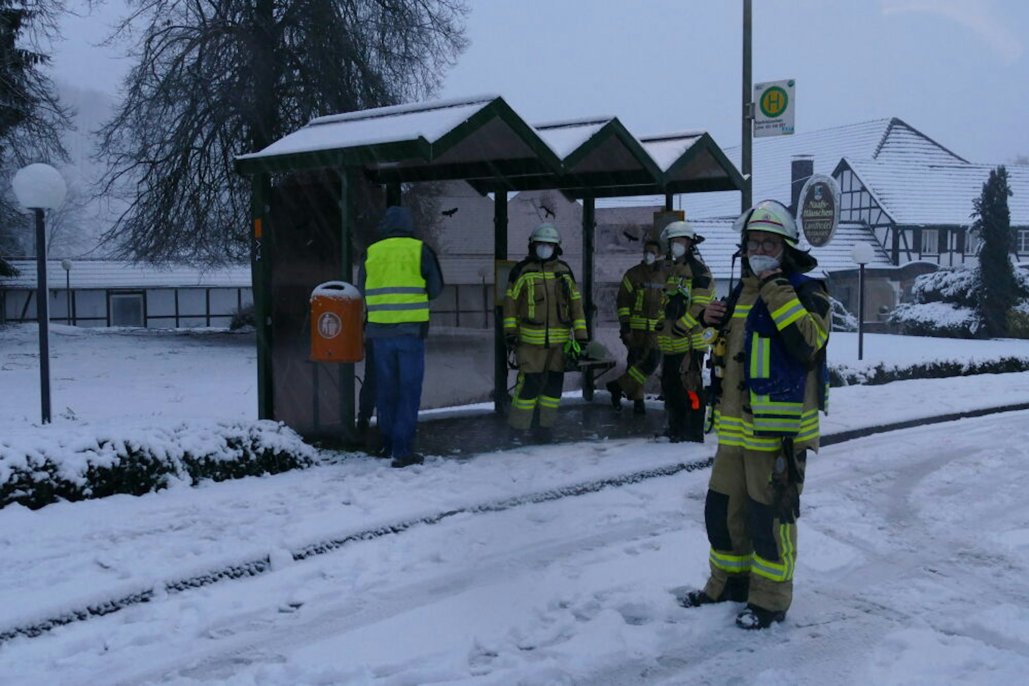 Der Einsatzleiter des Löschzugs Wahlscheid entschied, die Arbeiten vorerst zu unterbrechen. Doch inzwischen war auch der Rückweg durch Bäume versperrt. Die Feuerwehrleute brachten sich außerhalb der Gefahrenzone in Sicherheit, ihr Fahrzeug ließen sie stehen. Die Besatzung eines Streifenwagens ignorierte dabei die Anordnung der Feuerwehr, sich ebenfalls von den Bäumen zu entfernen, und blieb in ihrem Auto sitzen.