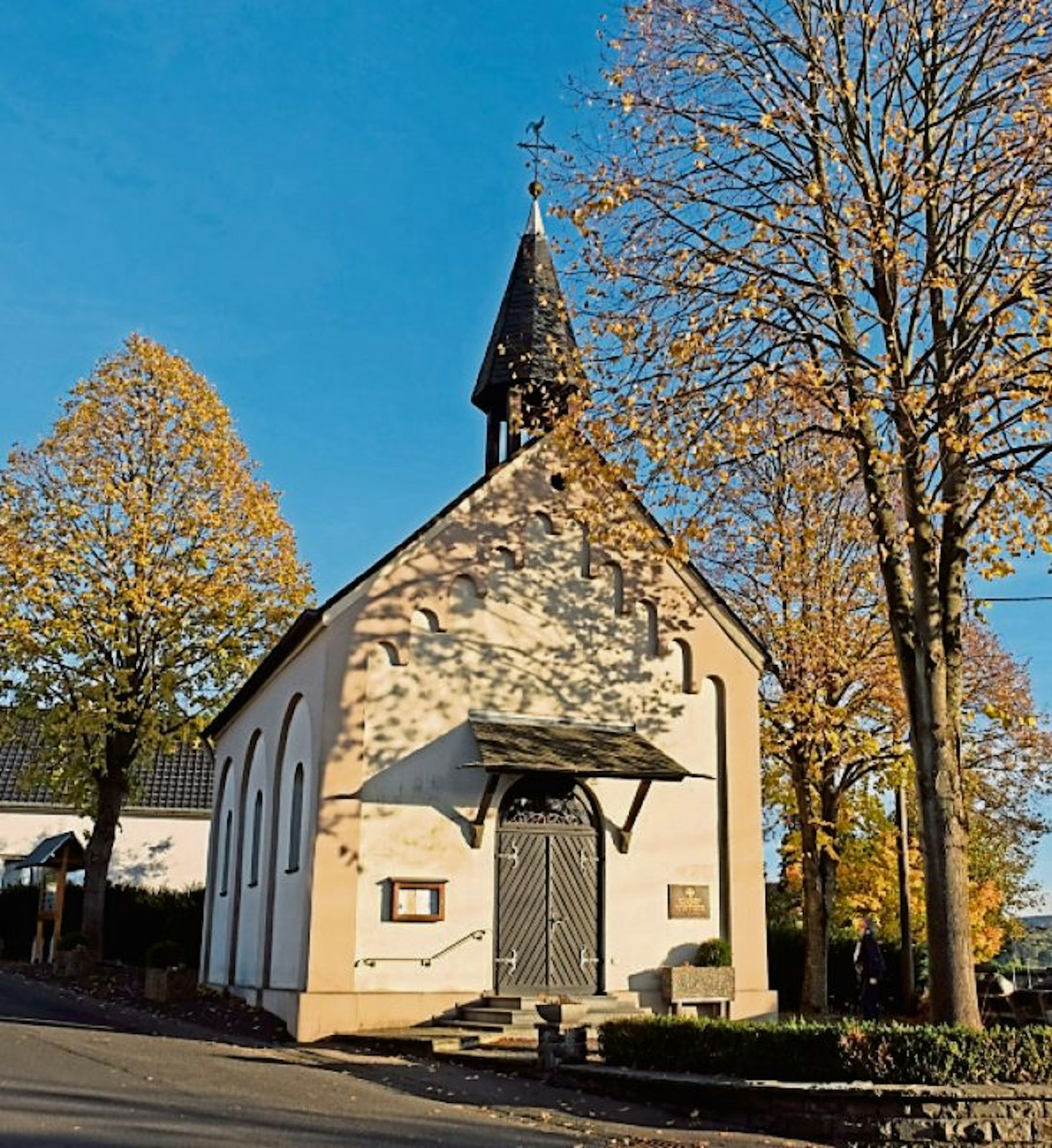 Die Kapelle in Quirrenbach steht am Rande der Fünf-Bäche-Wanderung durch das Siebengebirge bei Königswinter. Dort begeistert die tolle Landschaft die Wanderer.