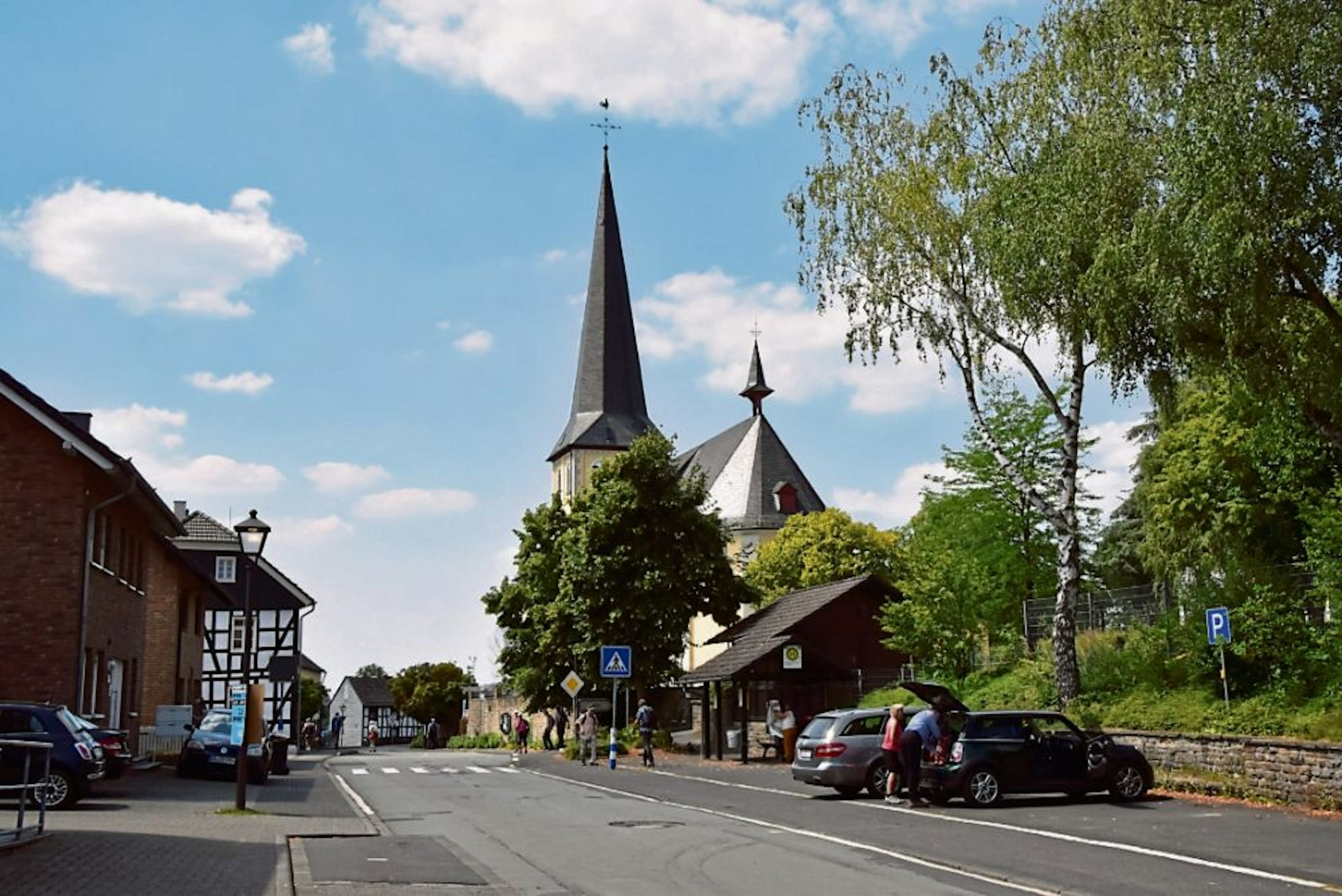 Alpin geht es hinunter ins Siegtal, nach Niederhalberg und schließlich über Halberg zurück nach Bödingen. Dort lohnt sich auf jeden Fall der Blick in die Marienwallfahrtskirche. Wer mag, kann auf dem Friedhof nebenan noch das Grab von Lieschen Müller besuchen.
