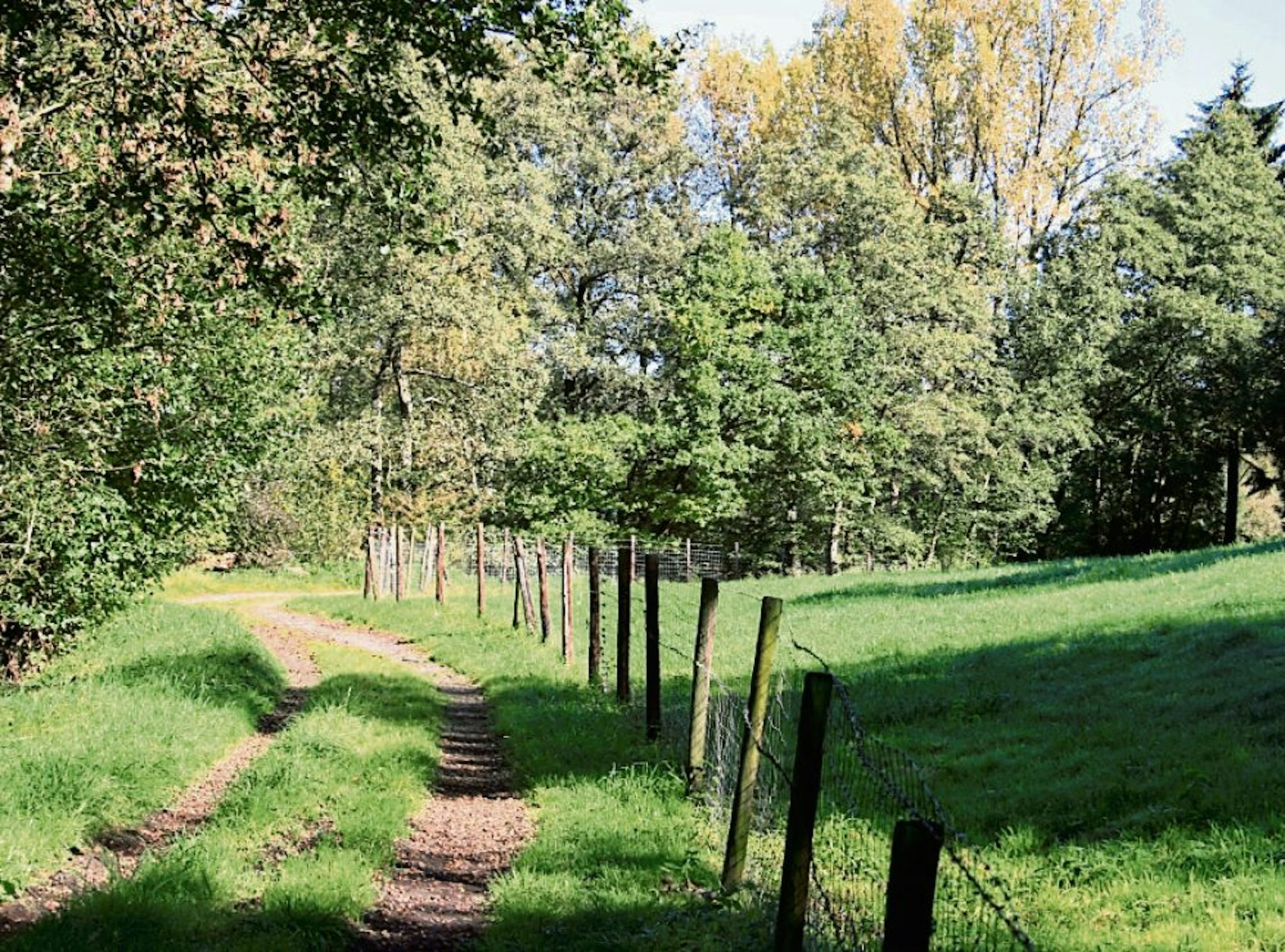 Nach der Überquerung des Pleisbaches lohnt sich der Blick zurück auf den Oelberg. Durch den lichten hohen Laubwald des Heisterbuschs führt der Weg zum Hühnerberg.