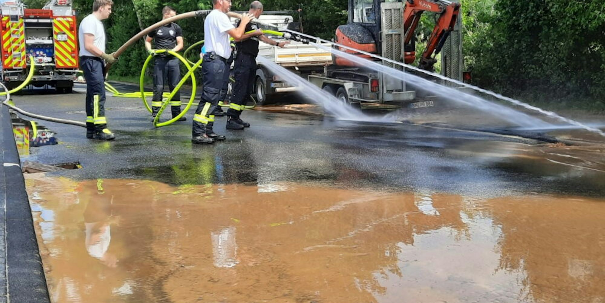 Zunächst hatten Feuerwehr und Polizei die Straße gesperrt. Erst am Sonntag schickte der Landesbetrieb ein Fremdunternehmen zur Reinigung der Fahrbahn