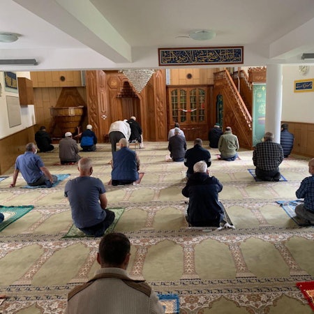 „Vor jedem Gebet bittet der Imam, näher zusammen zu rücken. Das ist natürlich symbolisch gemeint, wird aber auch so praktiziert. Während der Hochphasen der Corona-Pandemie ging das nicht“, sagt Gemeindemitglied Abdulraman Köyluoglu. An Feiertagen hätten nicht alle Menschen in den kleinen Gebetsraum gepasst, sie beteten teilweise draußen im Hof.