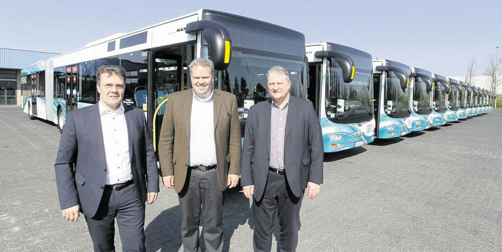 Im RSVG-Betriebshof in Hennef erläuterten (von links) Geschäftsführer Volker Otto, Aufsichtsratsvorsitzender Marcus Kitz und Geschäftsführer Michael Reinhardt die anstehende Verjüngung der Busflotte.