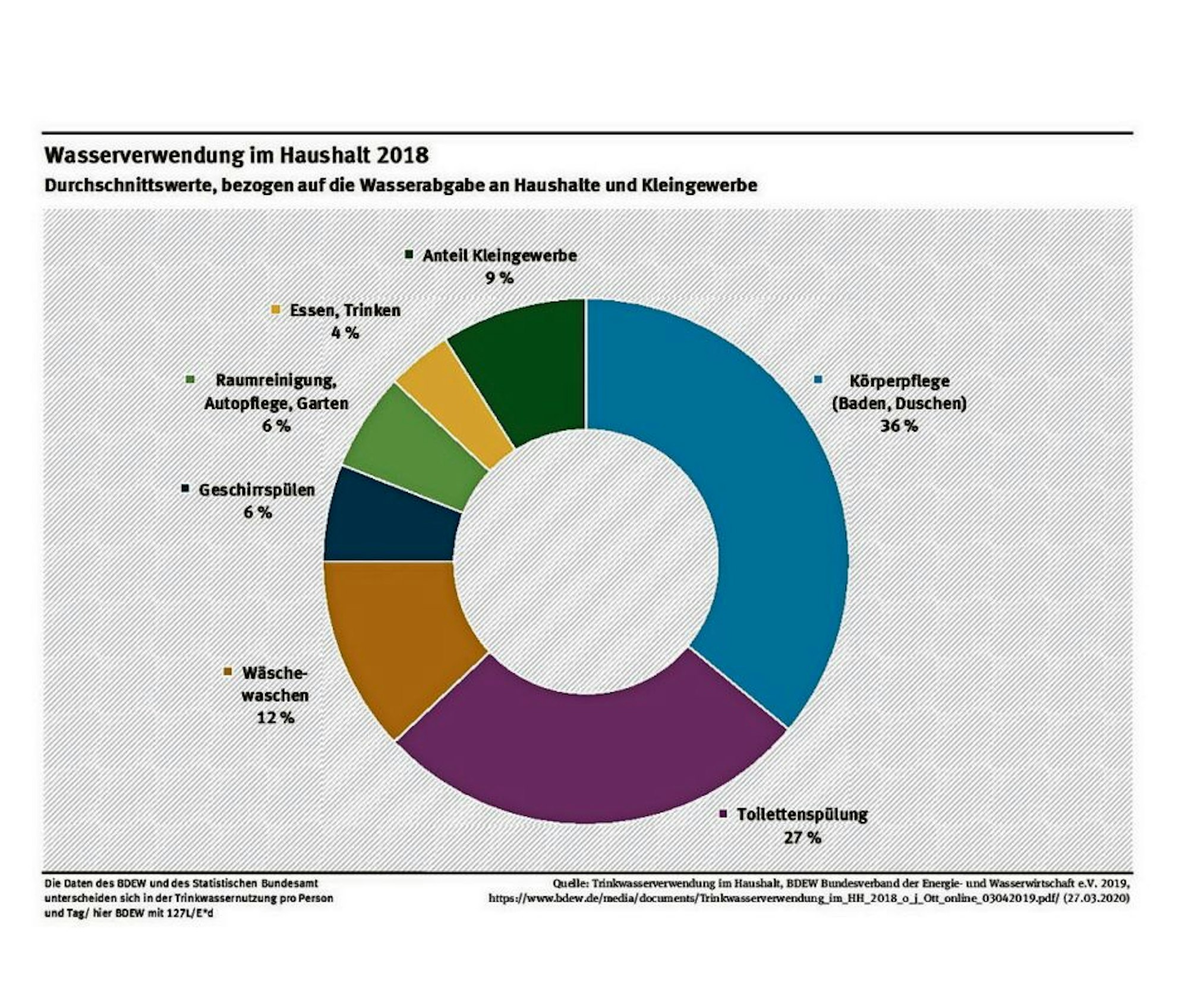 Überwiegend wird Wasser im Haushalt für die Körperpflege verwendet.