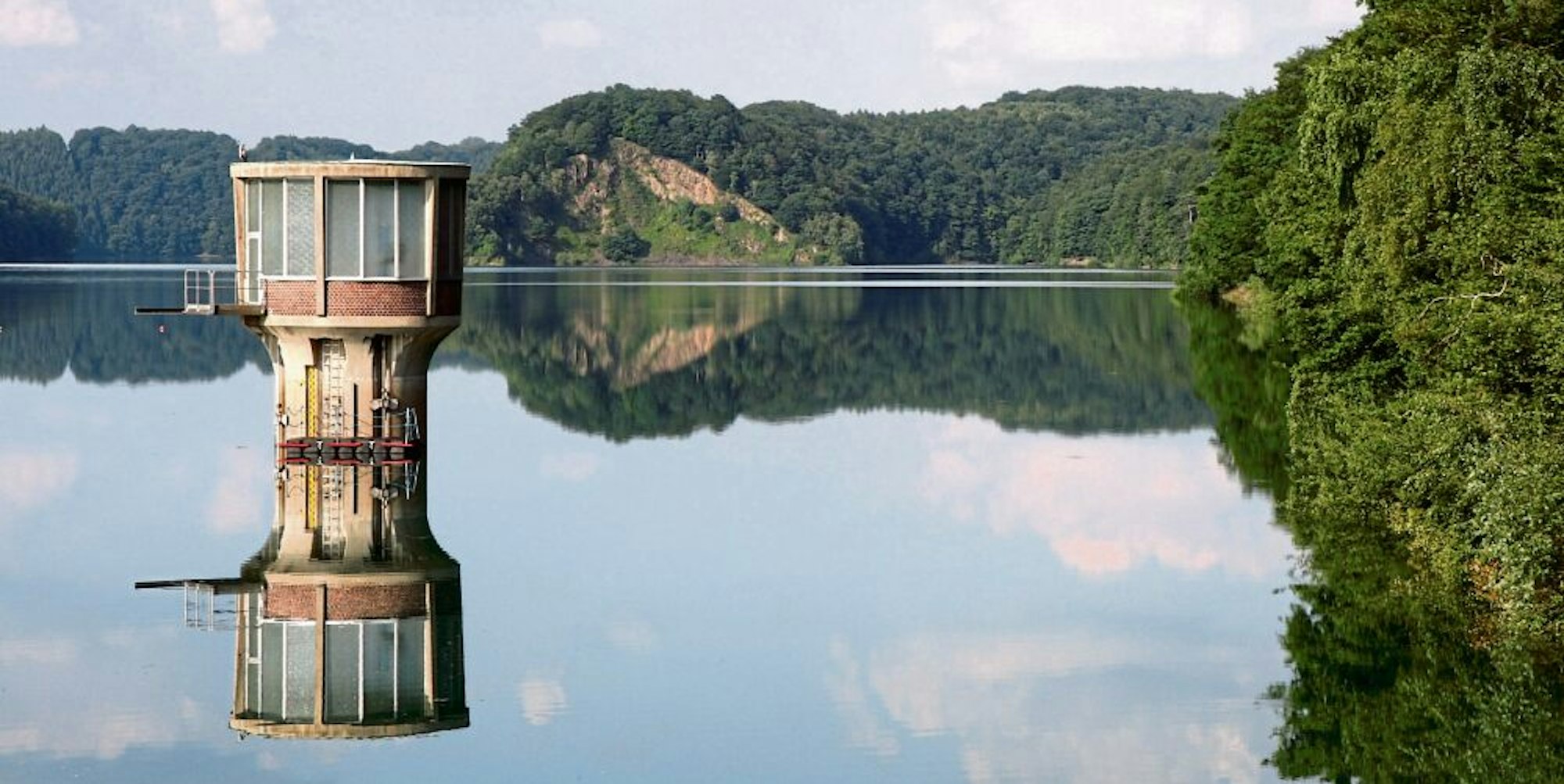 Ein idyllischer Anblick: Die Wahnbachtalsperre kann bis zu 41,3 Millionen Kubikmeter Wasser speichern.