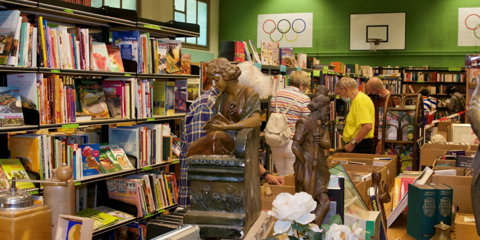 Mehr als 25 000 Bücher, CDs, DVDs, Schallplatten und Kunstgewerbeartikel warten dort jeden Freitag zwischen 12 und 16 Uhr auf Leseratten, Musik - und Kunstliebhaber. In Regalen und auf Tischen finden sich Romane, Biografien und Enzyklopädien, Fachbücher über alle Wissenschaftsgebiete, Epik und Lyrik für die großen, Bilder- und Abenteuerbücher für die kleinen Wissbegierigen und Muse-Beflissenen.