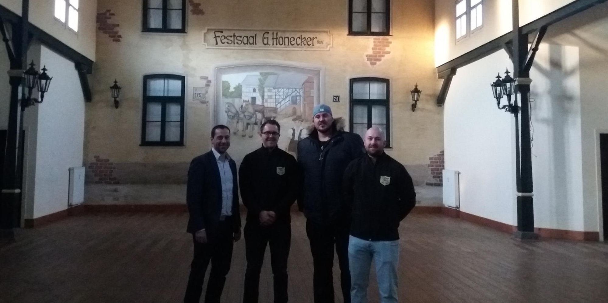 Auf neues Leben im alten Festsaal freuen sich (von links) Rene Puffe, Philipp Kaminski, Roger Sieger und Timo Sechi.