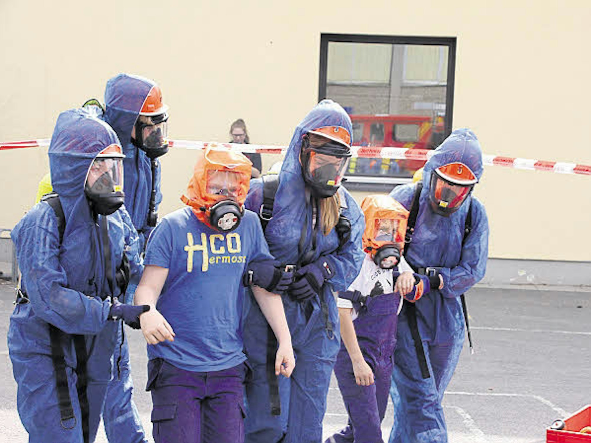 In Spezialanzüge gekleidet gingen die jungen Feuerwehrleute in die Übung, ein Chemieunfall wurde simuliert.