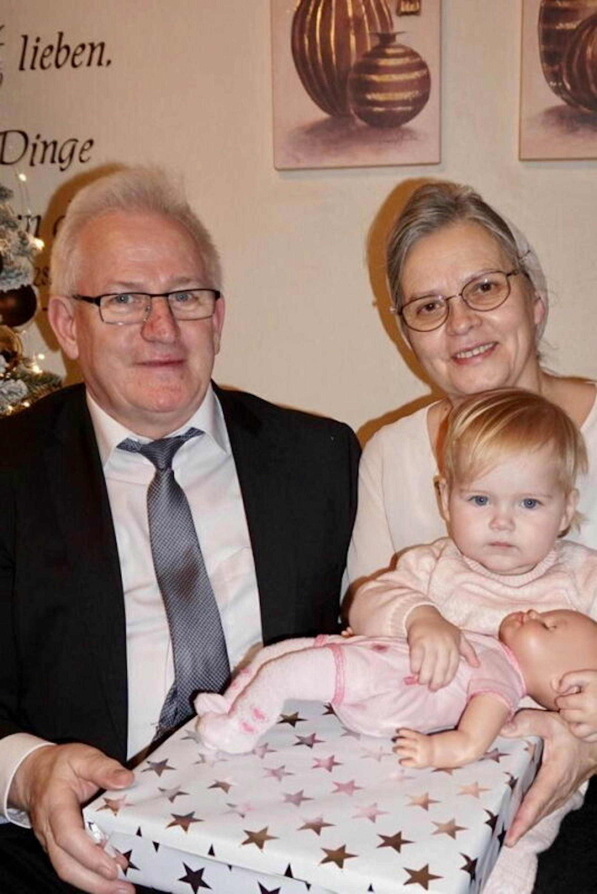 Viktor und Nelli Steinle mit einem ihrer Enkelkinder.