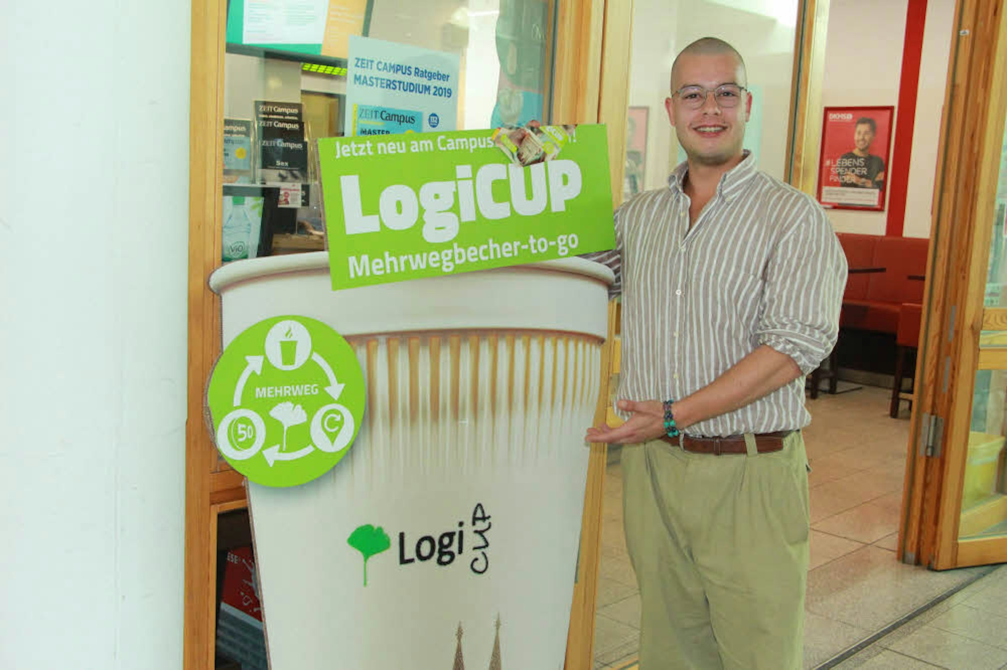 Auch ein Mehrwegbecher spart Ressourcen. Marco Ettelt gehört zum Team.
