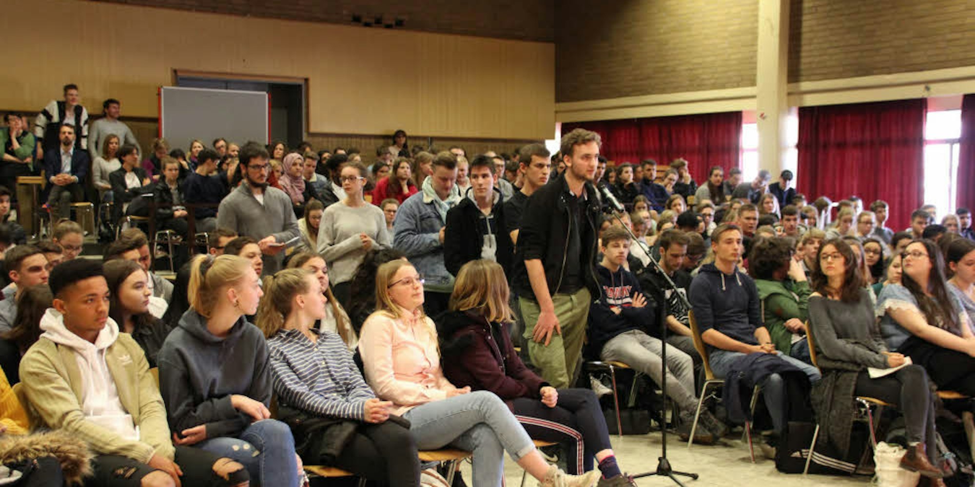 Casel wünschte sich mehr Bürgerbeteiligung, Boventer forderte ein soziales Europa für Frieden und Nachhaltigkeit. Voss skizzierte die ernste Situation für die Europäische Union, die in Gefahr stehe, auseinanderzudriften. Breiten Raum nahm die Diskussion um Flüchtlings- und Asylpolitik ein, die Schüler zeigten sich solidarisch. Scharf ging einer Hartwig an für die AfD-Aussage des aggressiv vordringenden Islams. Er zitierte den Koran auf arabisch und schalt die Aussage: „Das ist absoluter Schwachsinn.“ Mit denselben Worten zahlte Hartwig zurück.
