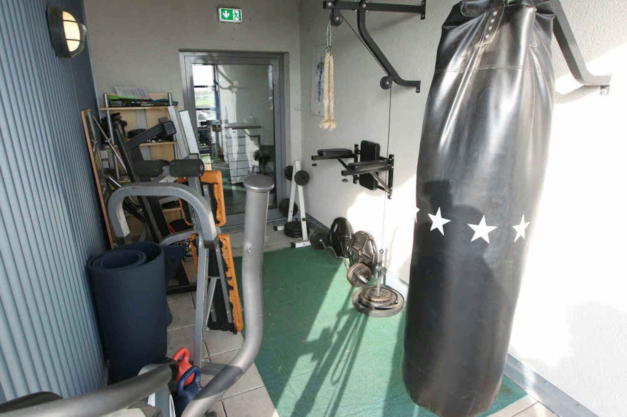 Für sich und seine Kommilitonen hat Nikita Jarocky ein kleines Fitness-Studio eingerichtet.